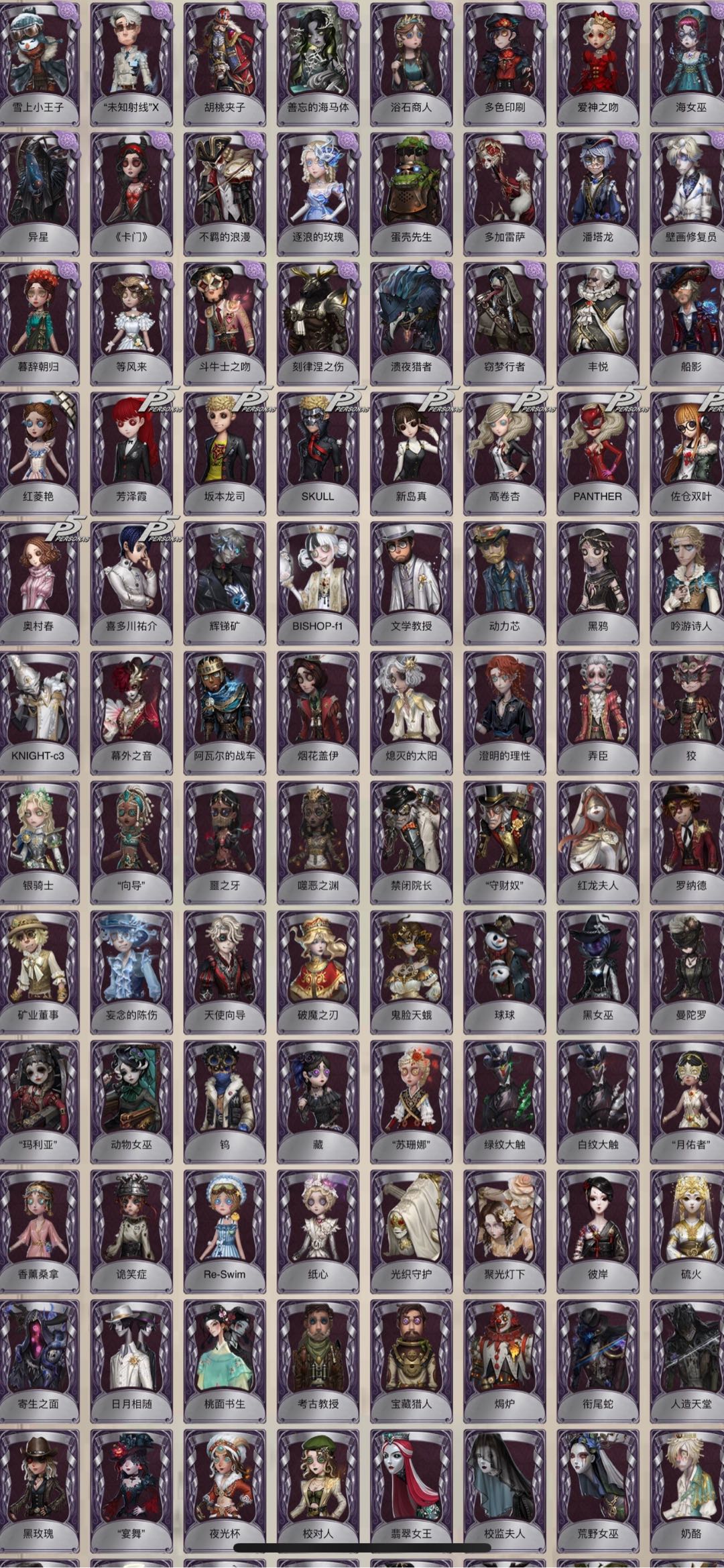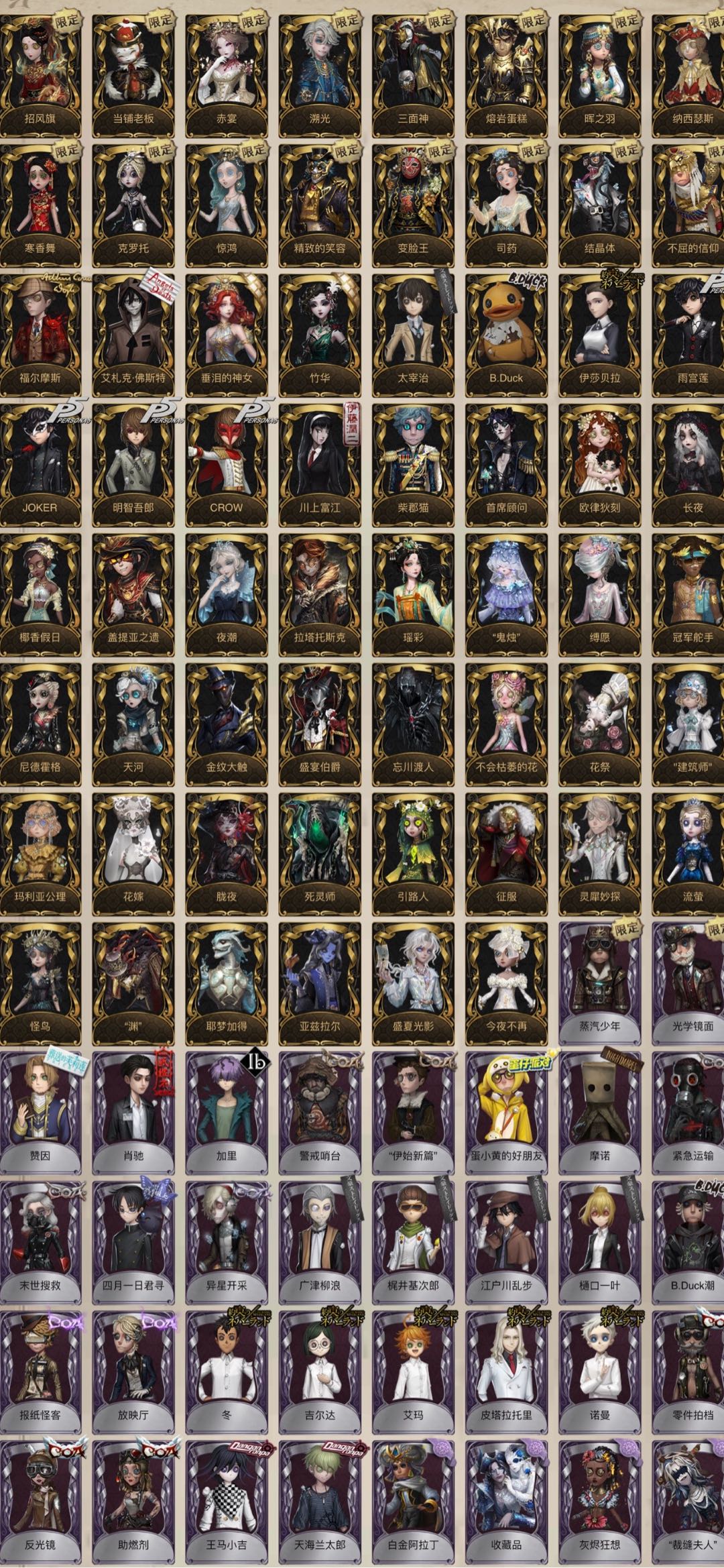 全角色时装共享时装 缚愿 胧夜 溯光 福尔摩斯 耶梦加得 司药套 瑶彩 盛夏光影 小巴特夜潮 柴郡猫 佐仓双叶 明智吾郎觉醒Crow 司药奥村春 新岛真 佐仓双叶 鬼烛 首席顾问 冠军舵手 玛利亚公理招风旗垂泪的神女四月一日君寻盖提亚之遗天河艾札克礼包艾扎克全角色25万归宿沉默宫殿椰香假日欧律狄刻竹华拉塔托斯克梶井基次郎樋口一叶万象乾坤礼包文豪联动太宰治和太宰治的书江户川乱步长夜精致的笑容 寒香舞 克罗托 惊鸿 不屈的信仰 当铺老板 赤宴 结晶体 三面神 纳西瑟斯 熔岩蛋糕 晖之羽 邪派魅力 川上富江 雨宫莲 JOKER 伊莎贝拉 B.Duck 流萤套 怪鸟套 金纹大触 建筑师 盛宴伯爵 忘川套 不会枯萎的花 花祭 花嫁 死灵师 引路人 今夜不再 亚兹拉尔 灵犀妙探 征服 渊 光学镜面 蒸汽少年 高卷杏 PANTHER 坂本龙司觉醒SKULL 喜多川祐介 暮辞朝归 等风来 刻律涅之伤 白金阿拉丁 异星 卡门 窃梦行者 蛋壳先生 浴石 红菱艳 反光镜 零件拍档 助燃剂 艾玛 冬 吉尔达 拉托里 诺曼 报纸怪兽 放映厅 B.Duck潮 不死护卫 焗炉 传信官 蒸汽朋克 林间狩者 文学教授 考古教授 宝藏猎人 绿纹大触 白纹大触 苏珊娜 诡笑症 月佑者 光织守护 寄生之面 日月相随 致命温柔 冰上舞蹈 蜡烛人 En Ligne 月相 历战猎人 禁闭院长 守财奴 向导 噩之牙 罗纳德 弄臣 狡 黑玫瑰 翡翠女王 校监夫人 奶酪 衔尾蛇 黑女巫 玛利亚 球球 烟花盖伊 命运轮盘守钟人 执政官,艾扎克 茶歇小姐