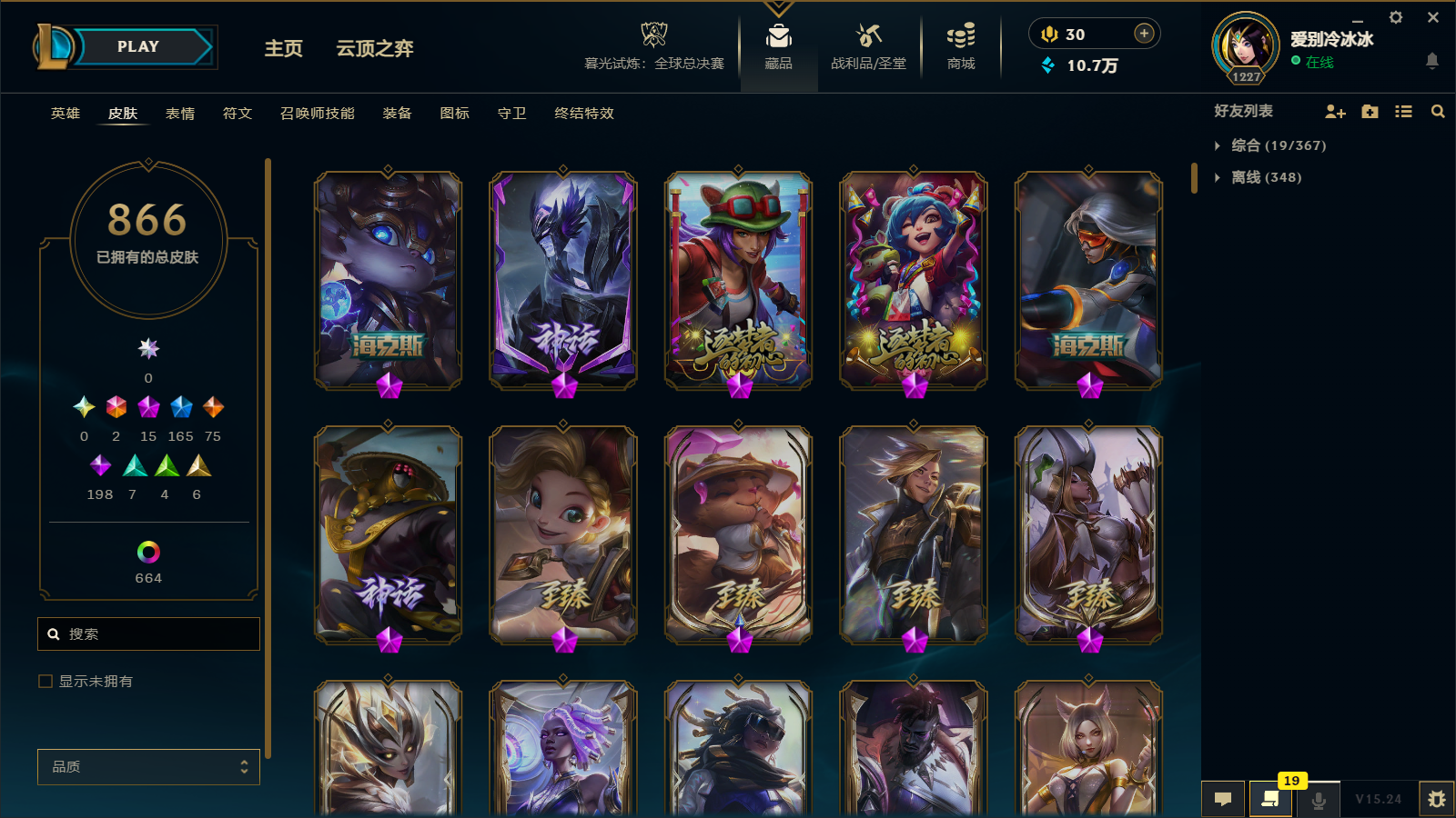 - 神话皮肤数量: 15