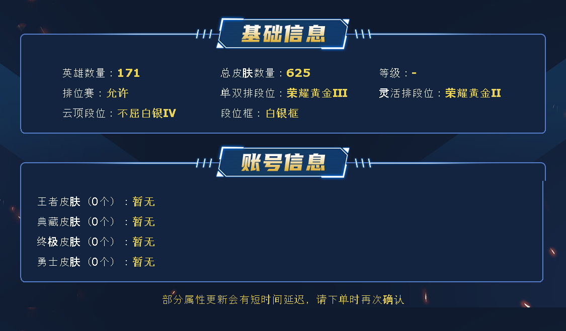 !虽然段位高点但是影藏分低打把就知道了!老板们玩的开心!挂机逃跑送人头是大禁忌!这么便宜的号下架了可就再也找不到了哦!查询【天师】,租号玩和U租号两大平台金冠商户!里面高端千皮号峡谷之巅账号王者大师钻石号白银青铜黑铁号痛快玩!谢谢 喜欢点个收藏