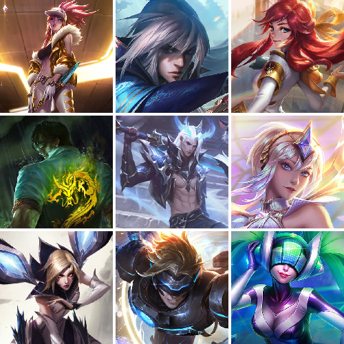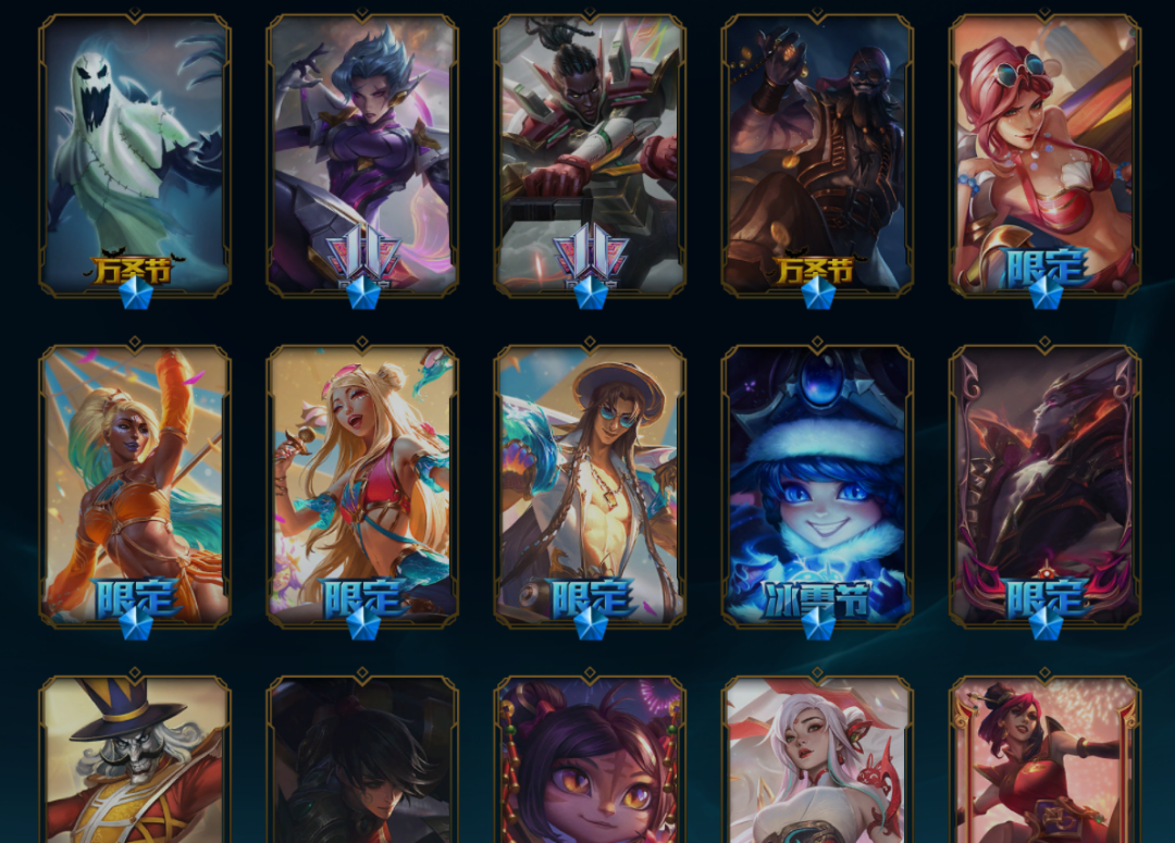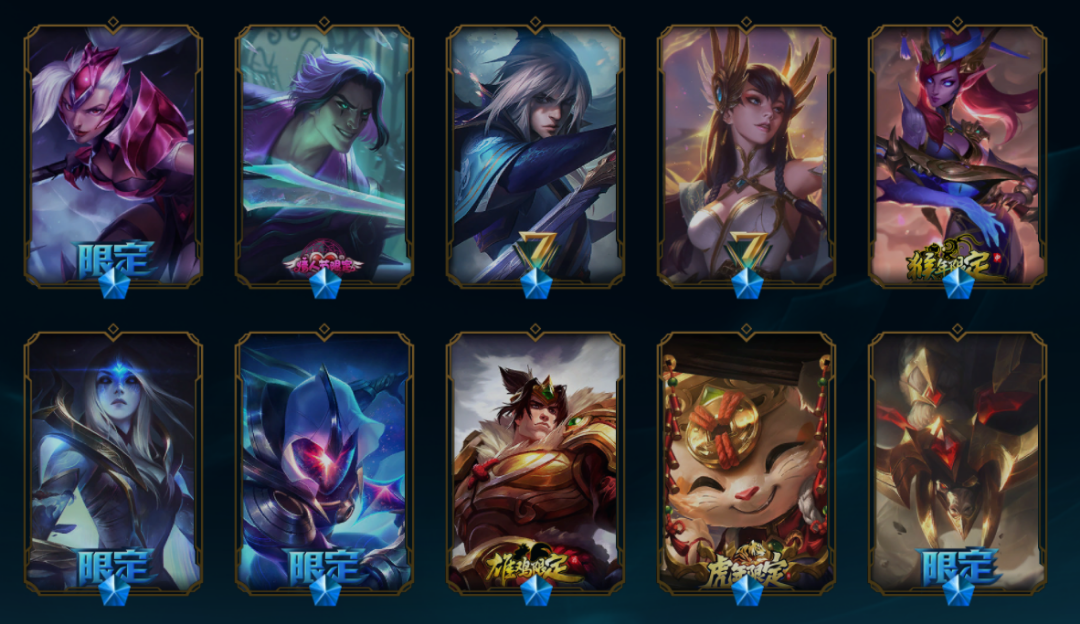 2100皮/81神话/龙瞎/海之歌/虎年套/灵魂莲华套/EDG套/蜜蜂套/黑夜星守/玉剑男女刀兔女刀