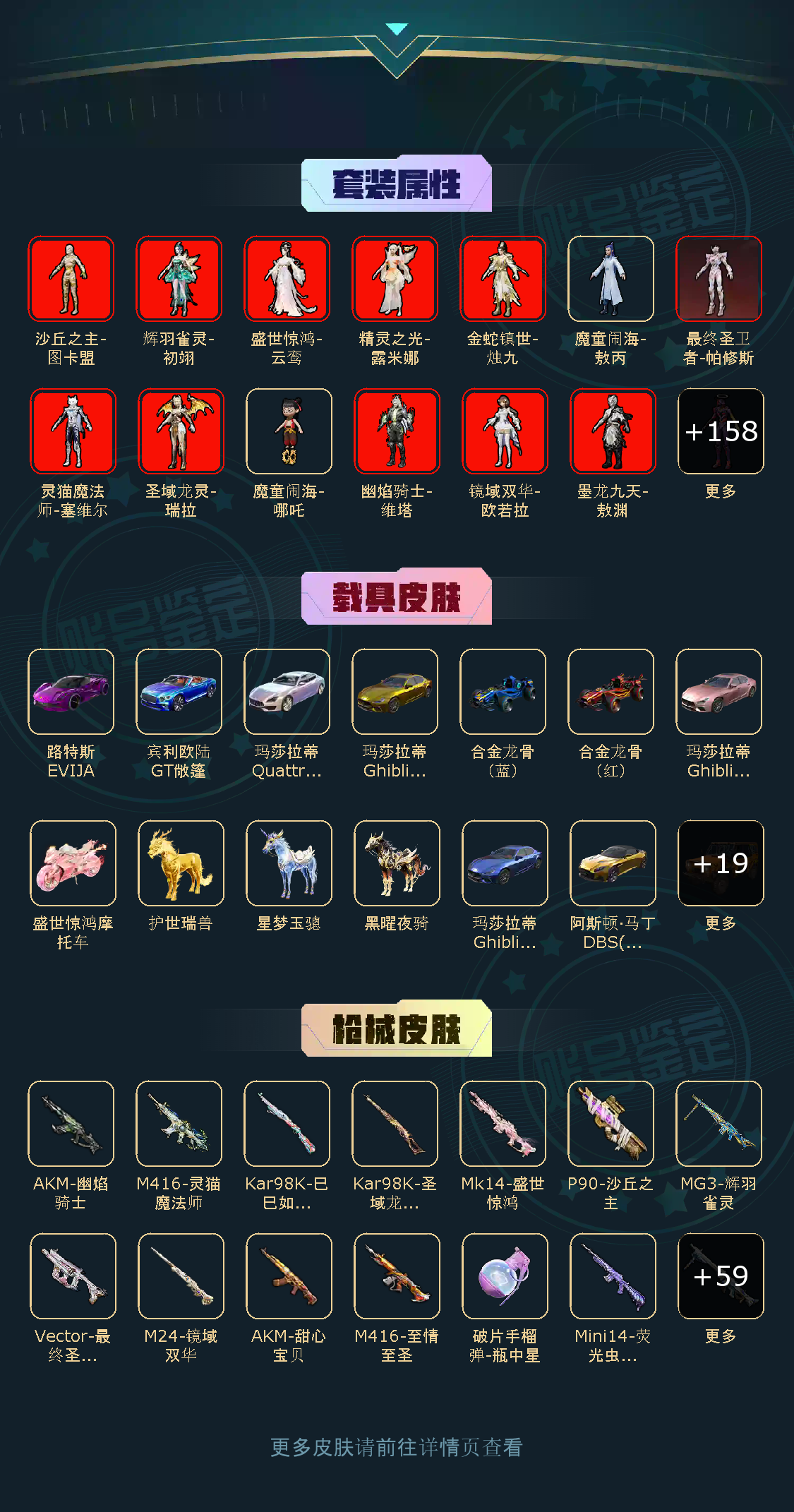 162粉,32载具,687套装,30王牌印记,无敌战神历史最高段,507262热力值 平底锅-林间仙鹿/M416-灵猫魔法师/AKM-甜心宝贝/SCAR-L-梦幻火箭/SCAR-L-童趣迷兔/M416-风花雪月/AUG-星之彼岸/M762-甜心娃娃/M762-激战未来/GROZA-香水柠檬/AKM-幽焰骑士/M416-心之恋语/M16A4-葫芦兄弟/M416-五爪金龙/M16A4-垂柳戏鸭/AKM-炫紫旋律/GROZA-精灵之光/M416-墨龙九天/GROZA-焦糖拿铁/SCAR-L-青春物语/M762-冷魅冰骑/AKM-百合蜜语/M416-至情至圣/M762-甜蜜誓约/SCAR-L-机甲封神/AKM-梦之光华/SCAR-L-魔童闹海 哪吒/S12K-海渊国主/SKS-碧影闪光/Mk14-盛世惊鸿/SKS-诡面斩/Mini14-荧光虫舞/Mini14-绚金瑰梦/SLR-暗夜玫瑰/VSS-烈焰拳霸/Mini14-龙虾霸霸/DP-28-扶摇飞仙/M249-彩虹甜喵/MG3-辉羽雀灵/DP-28-枪炮玫瑰/DP-28-幻梦音符/M249-猪猪侠/MG3-洛神天依/M249-古战神甲/M249-蓝莓炮弹/DP-28-豹影疾电/UZI-绮梦青鸾/汤姆逊-怪笑疯兔/Vector-红伞翩翩/UMP45-宇宙意志/AKS-74U-星穹咏叹调/Vector-环太平洋/UZI-筑梦精灵/Vector-最终圣卫者/UMP45-雪国精灵/UMP45-相思残雪/UMP45-恐龙拽拽/野牛-流星咚咚/P90-沙丘之主/汤姆逊-冰川粉黛/破片手榴弹-瓶中星球/Kar98K-伏魔团/Kar98K-圣域龙灵/AWM-花间之火/AWM-焰龙焚天/Kar98K-巳巳如意/AWM-橘柚倾心/M24-镜域双华/M24-暗星紫秘/Kar98K-暗翼战神/M24-星之信仰/Kar98K-绿意幻情/玛莎拉蒂Ghibli(金)/特斯拉Roadster(尊享铂)/特斯拉Roadster(沁心粉)/特斯拉Model 3(珍珠白)/玛莎拉蒂Ghibli(蓝)/特斯拉Roadster(水滴蓝)/阿斯顿·马丁DBS(金)/玛莎拉蒂Quattroporte(幻星粉)/玛莎拉蒂Ghibli(粉)/虚妄之影(炫耀紫)/宾利欧陆GT敞篷(深空蓝)/萌喵橘座/阿斯顿·马丁DBX(橙)/南瓜骑士/特斯拉Model X(冷光银)/鬼马风驰/快艇-塞莎KL27(霓虹粉)/特斯拉Cybertruck(荒芜蓝)/金龙耀世/合金龙骨(蓝)/灵鼠银迹/合金龙骨(红)/路特斯EVIJA(电光紫)/兰博基尼SVJ(炫光金)/护世瑞兽/星梦玉骢/黑曜夜骑/兰博基尼Aventador SVJ(炫光金)/辉羽雀灵自行车/双人摩托-梦幻火箭/双人摩托-双刃魅影(金)/盛世惊鸿摩托车/踏焰逐风摩托车/