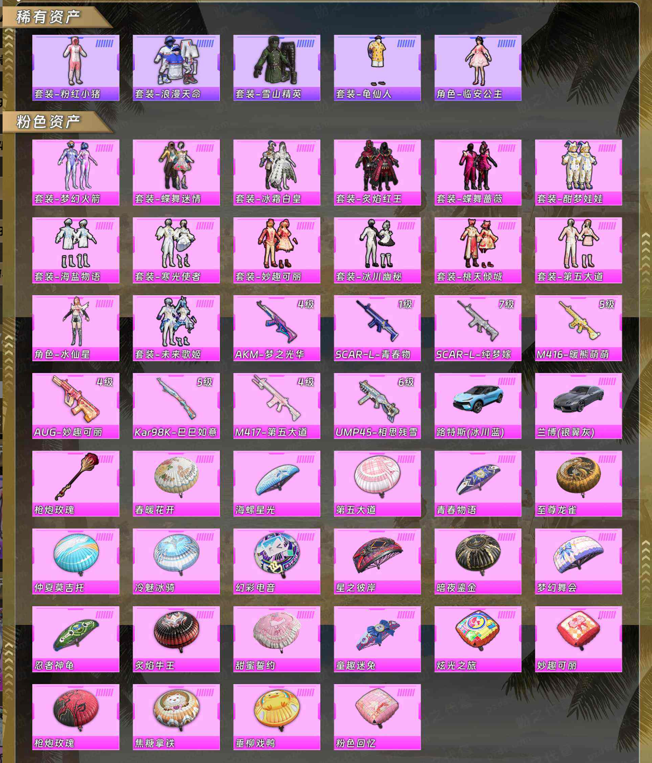 【稀有资产】套装-粉红小猪/套装-浪漫天命/套装-雪山精英/套装-龟仙人/角色-临安公主