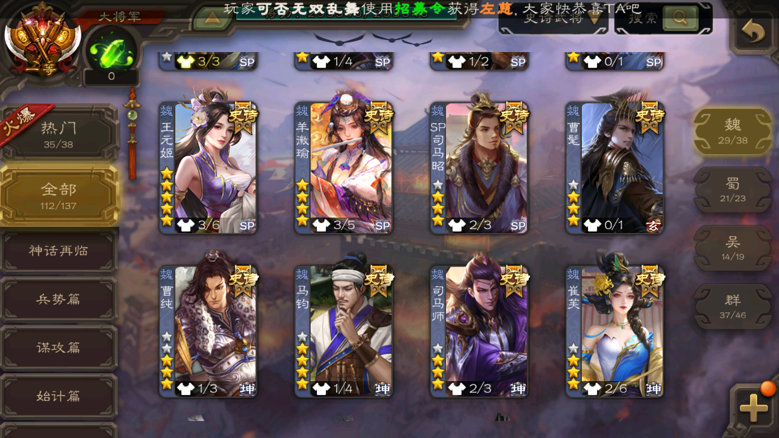 【全平台】 崔芙112史诗【锦鲤有卡】手气卡友诸葛亮曹髦回廊文鸯回廊郭嘉双动回廊杜预谋曹丕动刘焉回廊神荀彧