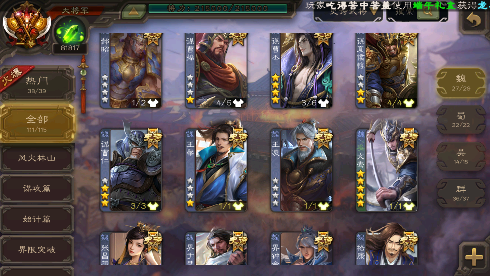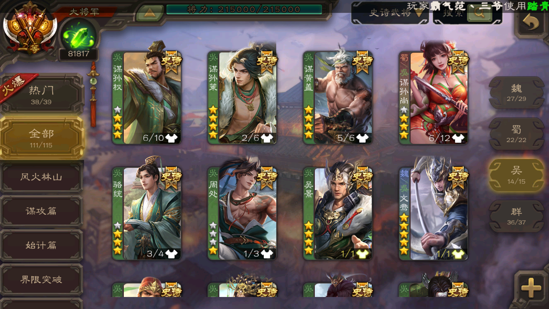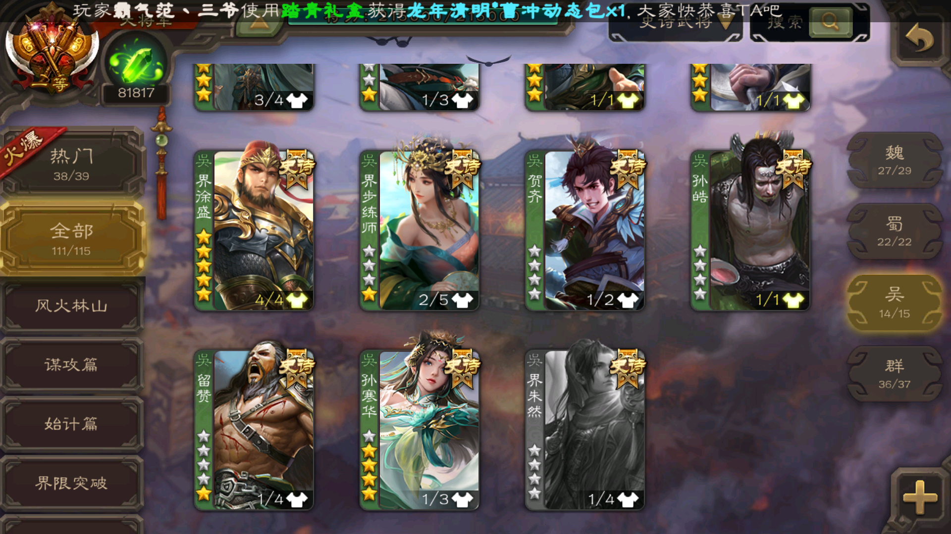 有三卡/全灯全扩全武将112史诗一等大将军回廊羊徽瑜月耀华裳谋夏侯惇/回廊郭嘉以身正道/最新神鲁肃/天子令动谋曹丕回廊神郭嘉倚星折月回廊界钟会回廊杜预回廊动谋关羽以身证道回廊动文鸯势若万钧谋黄月英神华佗回廊冠绝天下南华老仙蒋干星周不疑匡汉延祚回廊神荀彧回廊动周群郭女王谋孟获谋孙权十常侍回廊神太史慈回廊杜预谋孙策谋貂蝉动刘焉动神郭嘉动神荀彧动神甘宁动神曹操动灵雎徐荣鲍三娘谋黄忠神孙策动谋曹操动谋刘备动谋黄盖孙寒华谋曹仁动文鸯回廊动大宝星魏延动张菖蒲动界钟会动戏志才动曹婴动王元姬动羊徽瑜动司马昭马钧动司马师动谋夏侯氏动谋孙尚香傅佥回廊动谋孙权动谋孙策灵魂歌王动留赞动许攸动谋貂蝉回廊动杜预张仲景皇甫嵩动界左慈动界李儒界沮授动司马徽动卑弥呼动苏飞张琪瑛动杨彪裴秀动祢衡动庞德公南华老仙动星甘宁冠绝天下动神吕布动神赵云动神司马懿动神陆逊回廊动神太史慈双形态回廊文鸯双形态回廊动文鸯回廊双形态动文鸯破宇开天天子令谋曹丕气荡山河势于吉动势辛宪英