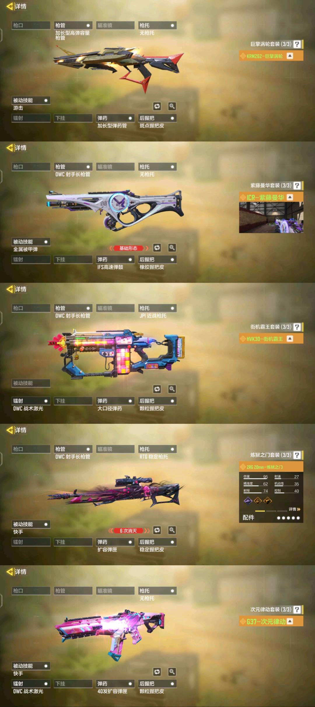 街机霸王-巨擎涡轮-炼狱之门-ICR紫藤-蝴蝶刀-唐刀-龙泉-藤棍-钗-次元律动-M16T3-AKBP塞壬律曲-白月魁-火蜥蜴-迷影之境-虚空塌陷(少女前线联动)电棍炽热