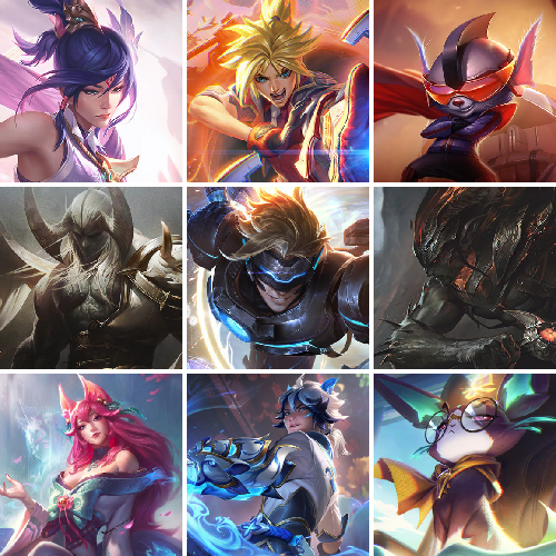 【全英雄可排位489原皮肤】至臻赛娜、至臻金克丝、至臻璐璐、至臻佐伊、新至臻卡莎、至臻妖姬、至臻锐雯、至臻刀妹、至臻剑魔、至臻卢锡安、至臻婕拉、至臻亚索、水晶圣骑岩雀、海克斯乌鸦、海克斯炸弹人、海克斯希维尔、光明哨兵男枪、太空律动机器人、青花瓷EZ、女帝卡特琳娜、灵魂莲华阿狸、水晶玫瑰阿克尚、伯爵卡萨丁、养蜂人、泳池女警、征服者卡尔玛、青花瓷莫甘娜、青花瓷女枪、玉剑传说琴女、绝息圣堂大虫子、绝息圣堂吸血鬼、至高天奎桑提、至高天薇古丝、灵魂莲华辛德拉、灵魂莲华约里克、星之守护者尼菈、星之吞噬者莫甘娜、神龙尊者锤石、魔女蛇女、秩序之舌塔姆、莫测之影卡蜜尔、青花瓷千珏、K/DA ALL OUT阿卡丽、猎户星神韦鲁斯、屠龙勇士图奇、未来战士EZ、地底世界、勇者豹女、暗星尊烬、黑夜奶妈、黑夜亚索、屠龙勇士潘森、未来战士女警、星守金克丝、星守霞、耀星女神拉克丝、源计划派克、源计划薇恩、战斗学院EZ、暗星小丑、奥德赛石头人、柯基库奇、雷喵喵尔、千纸凤凰、塔里克辉盾、泰隆黑木、图奇影足、未来战士艾克、未来战士锐雯、西部人马、西部诺手、小蜜蜂悠米、星守妮蔻、永恒之森阿狸、永恒之森沙皇、永恒之森纳尔、宇航员凯南、玉剑娜美、玉剑剑姬、玉剑锐雯、源计划阿卡丽、源计划金克丝、战斗教授男枪、战斗校长悠米、战斗学院卡特琳娜、战斗学院拉克丝