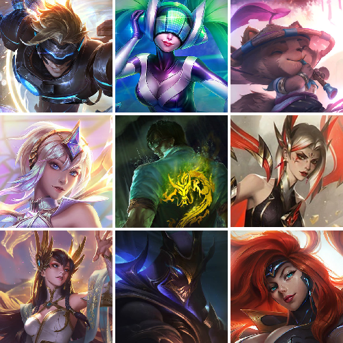 魔女婕拉至臻 灵能特工伊泽瑞尔至臻 KDA一代卡莎至臻 绒毛菲兹至臻 海克斯科技吉格斯 海克斯科技玛尔扎哈 海克斯科技阿木木 新卧虎藏龙贾克斯 恐惧新星德莱厄斯 舞会公主安妮 创星之灵璐璐 生化领主泰达米尔 养蜂人辛吉德 勇敢的心德莱厄斯 电玩女神厄运小姐 电玩勇者锐雯 电玩女神阿狸 玉剑传说舞剑仙 龙的传人李青 银龙裁决泰隆 替父从军花木兰 神龙烈焰金克丝 碧玉之牙卡西奥佩娅 古琴余韵娑娜 春晖神女拉克丝 你看见过我的熊猫吗安妮 北辰之威内瑟斯 南天之怒沃里克 美猴王孙悟空 定海神珍孙悟空 玉净夜叉凯特琳 紫金罗刹莫甘娜 广寒仙子嫦娥 虎痴之拳蔚 张辽文远 司马懿仲达 金猪烈焰瑟庄妮 烈焰美人薇恩 纳财大帝塔姆 神龙之翼库奇 王国机神白虎贾克斯 王国机神玄武盖伦 胜利枪神格雷福斯 胜利之剑亚托克斯 怦然心动凯特琳 碎心之拳蔚 甜心之羽霞 甜心之翎洛 甜心宝贝安妮 甜心宝贝娑娜 觅心游侠卢锡安 觅心魔灵奥莉安娜 觅心女王艾希 觅心之翼奎因 觅心萝莉金克丝 觅心猫猫悠米 觅心猎手薇恩 幽梦玫瑰辛德拉 冬境仙灵索拉卡 寒冬精灵璐璐 冬季仙境奥莉安娜 雪球也能爆炸吉格斯 圣诞捣蛋鬼金克丝 圣诞老人布隆 圣诞老人德莱文 冰雪驯鹿波比 冰雪风暴希维尔 冬季仙境卡尔玛 持胡萝卜的雪人易 狂心冰王图奇 冰封王子蒙多 冰雪女神辛德拉 魄罗骑士瑟庄妮 夺命美人卡特琳娜 平安夜女神娑娜 圣诞糖果棒厄运小姐 魅惑女巫迦娜 魅惑女巫厄运小姐 魅惑女巫莫甘娜 魅惑女巫崔丝塔娜 魅惑女巫奈德丽 伯爵卡萨丁 大魔法锅布里茨 死亡誓约卡特琳娜 死亡誓约劫 灵魂收割者索拉卡 克烈古拉伯爵 泳池派对凯特琳 泳池派对佐伊 泳池派对普朗克 泳池派对辛德拉 泳池派对奥莉安娜 泳池派对嘉文四世 泳池派对黑默丁格 泳池派对塔莉垭 泳池派对厄运小姐 泳池派对塔里克 泳池派对菲奥娜 泳池派对格雷福斯 泳池派对李青 泳池派对蕾欧娜 泳池派对雷克顿 电玩战魂赫卡里姆 斩星魔剑易 御星魔矢艾希 创战纪希维尔 送披萨的小姐姐希维尔 克格汪 制胜金靴李青 制胜金球拉莫斯 SSG霞 SSG洛 SSG纳尔 SSG塔莉垭 SSG嘉文四世 SSG伊泽瑞尔 SKTT1扎克 SKTT1烬 SKTT1辛德拉 SKTT1娜美 SKTT1艾克 SKTT1奥拉夫 SKTT1阿利斯塔 SKTT1卡莉丝塔 SKTT1瑞兹 SKTT1阿兹尔 SKTT1伊莉丝 SKTT1雷克顿 SSW锤石 SSW雷恩加尔 SSW泰隆 SSW图奇 SSW辛吉德 SKTT1贾克斯 SKTT1劫 SKTT1婕拉 SKTT1李青 SKTT1薇恩 暗杀星奥莉安娜 暗杀星蒙多 暗杀星努努和威朗普 暗杀星伊泽瑞尔 暗杀星慎 Fnatic迦娜 Fnatic库奇 Fnatic古拉加斯 Fnatic嘉文四世 Fnatic卡尔萨斯 冰雪节格雷福斯 冰雪节玛尔扎哈 冰雪节辛吉德 冰雪兽纳尔 防暴机器人布里茨 防暴士兵格雷福斯 防暴士兵辛吉德 防暴天使凯尔 钢铁之翼艾尼维亚 冠军典狱长锤石 冠军掠夺者卡兹克 冠军之矛卡莉丝塔 冠军之刃锐雯2016 冠军之血希瓦娜 冠军之隐劫 冠军之志瑞兹 春晖神女艾希 鬼影森森茂凯 鬼影重重魔腾 海贼瑞兹 红桃杰克崔斯特 胡桃夹子萨科 惊悚派对阿木木 惊悚派对费德提克 警用试作体K9内瑟斯 蓝色忧郁崔斯特 魅惑女巫悠米 蒙多蒙多 密林猎手提莫 南瓜头费德提克 女猎手希维尔 圣诞精灵崔丝塔娜 圣诞开心鬼提莫 圣诞狂欢基兰 圣诞狂欢努努和威朗普 圣诞老人古拉加斯 圣诞玩偶波比 圣诞驯鹿克格莫 糖果使徒费德提克 外星装甲库奇 卧虎藏龙贾克斯 无头骑士赫卡里姆 喜庆之树茂凯 邪恶圣诞老人维迦 幸福女神乐芙兰 雪默丁格 雪装奈德丽 野兽猎人德莱文 野兽猎人瑟庄妮 野兽猎人泰达米尔 英勇玩具兵普朗克 永恒之森乐芙兰 勇者阿狸 勇者奈德丽 征服者阿利斯塔 征服者卡尔玛 征服者韦鲁斯 暗影沃里克 机械迷城加里奥 诺斯费拉图弗拉基米尔 战场BOSS吉格斯 阿木木主人不要我了 神凰行者幽羽玄凰萨勒芬妮 波比的巧克力工坊 地底世界崔斯特 都铎王朝图奇 十周年纪念安妮 源代码乐芙兰 神凰行者瑞羽圣凰艾尼维亚 DJ娑娜 大元素使拉克丝 灵魂守卫乌迪尔 未来战士伊泽瑞尔 武装战姬厄运小姐 【重要炫彩】春晖神女拉克丝流风回雪 玉净夜叉凯特琳炫金神机 玉剑传说无极白虎 雾雨之刃锐雯 弹幕天使卡莎炽天使勇敢 弹幕天使卡莎炽天使公正 泳池派对璐璐尊贵红钻鱼 可爱可爱粉红红悠米 春晖神女拉克丝轻云蔽月 奥德赛娑娜恒星游历者 奥德赛金克丝恒星游历者 社会名流乐芙兰毒花之桔梗花 女校长菲奥娜梦幻的倩影 时之砂艾克邪龙 铁哥们儿奥拉夫粉红铁汉 军神战甲波比爱神之怜 怨之砂派克绯幻 可爱可爱粉红红提莫 草莓味糖果兔宝宝提莫 图奇影足梦境勇者 星之守护者COS厄加特爱与正义 禁军统帅赵云 黑帮管家布隆造梦大师 最后一只恐龙纳尔浪漫粉晶龙 抵抗军炎魔俄洛伊粉红魅焰