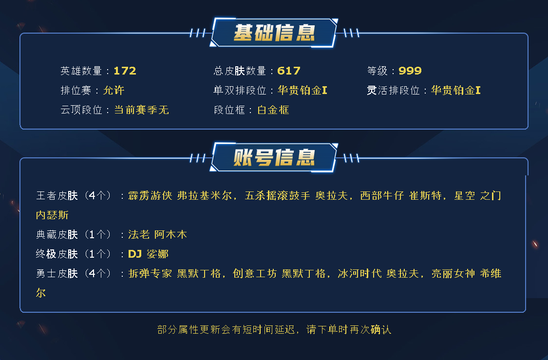 630皮肤〓摄魂VN〓龙琴花木兰鸡年蔚〓灰烬骑士〓创战纪〓电玩女枪瑞文彩虹马