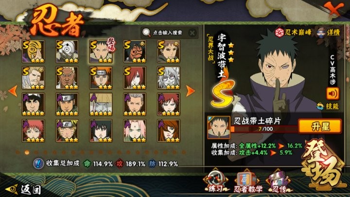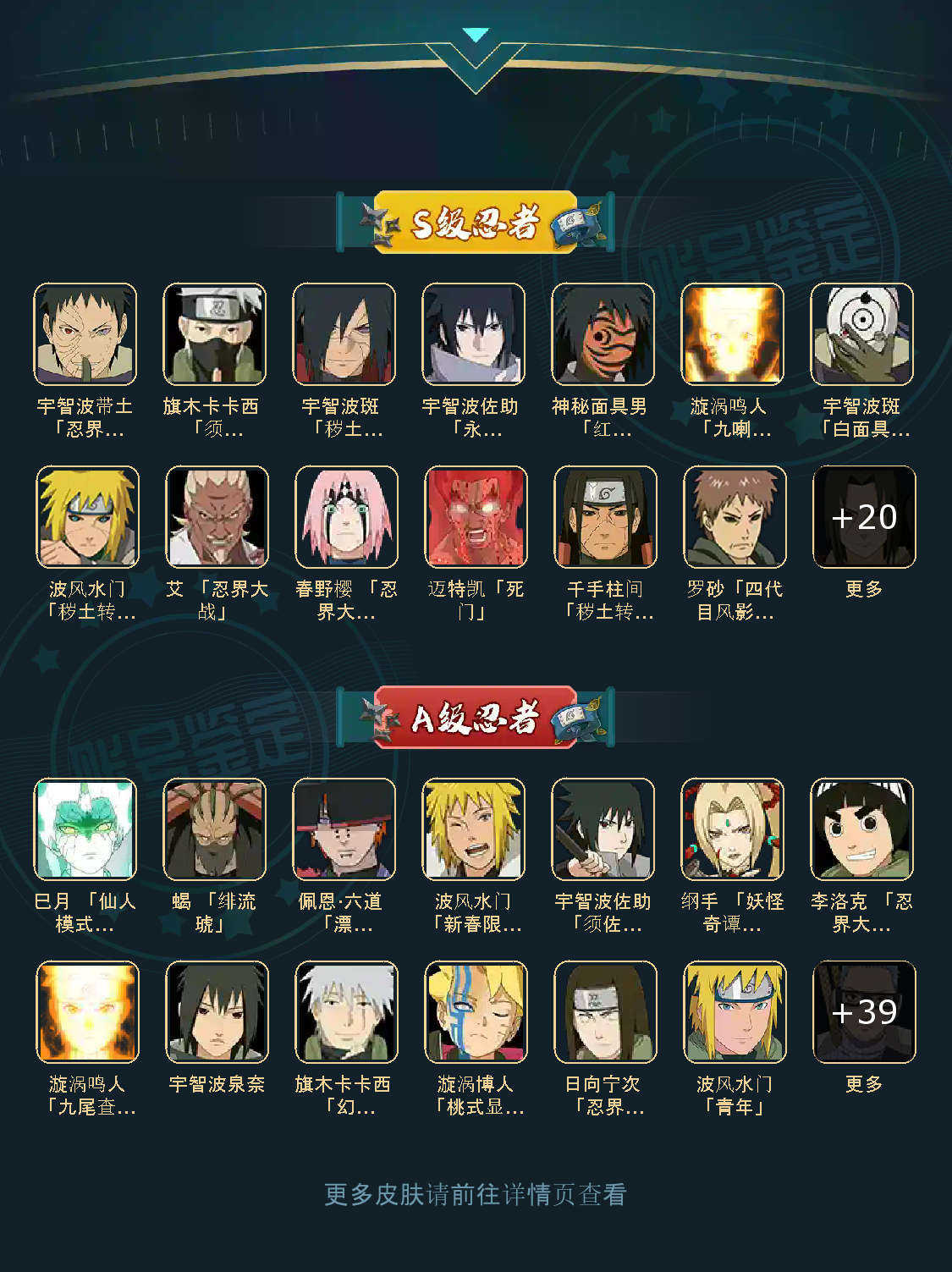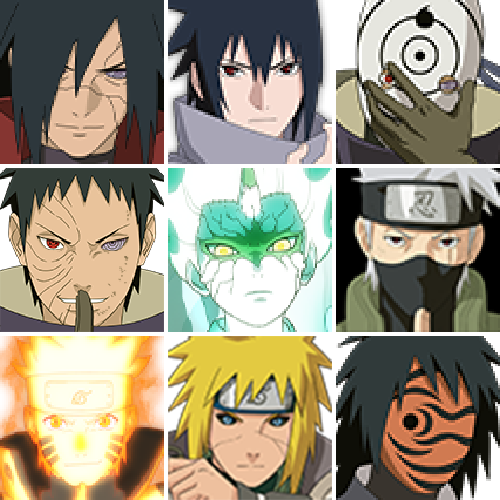 :大蛇丸,水门,九喇嘛,永恒佐助,忍战樱,自来也,蜀面,百豪纲手,死门凯,秽土水门,秽土斑,斑,解斑,须佐宇智波鼬,秽土宇智波鼬,虎皮,白面具,忍战带土,红夜带土,罗砂,幻月,四代雷影艾,天道佩恩,