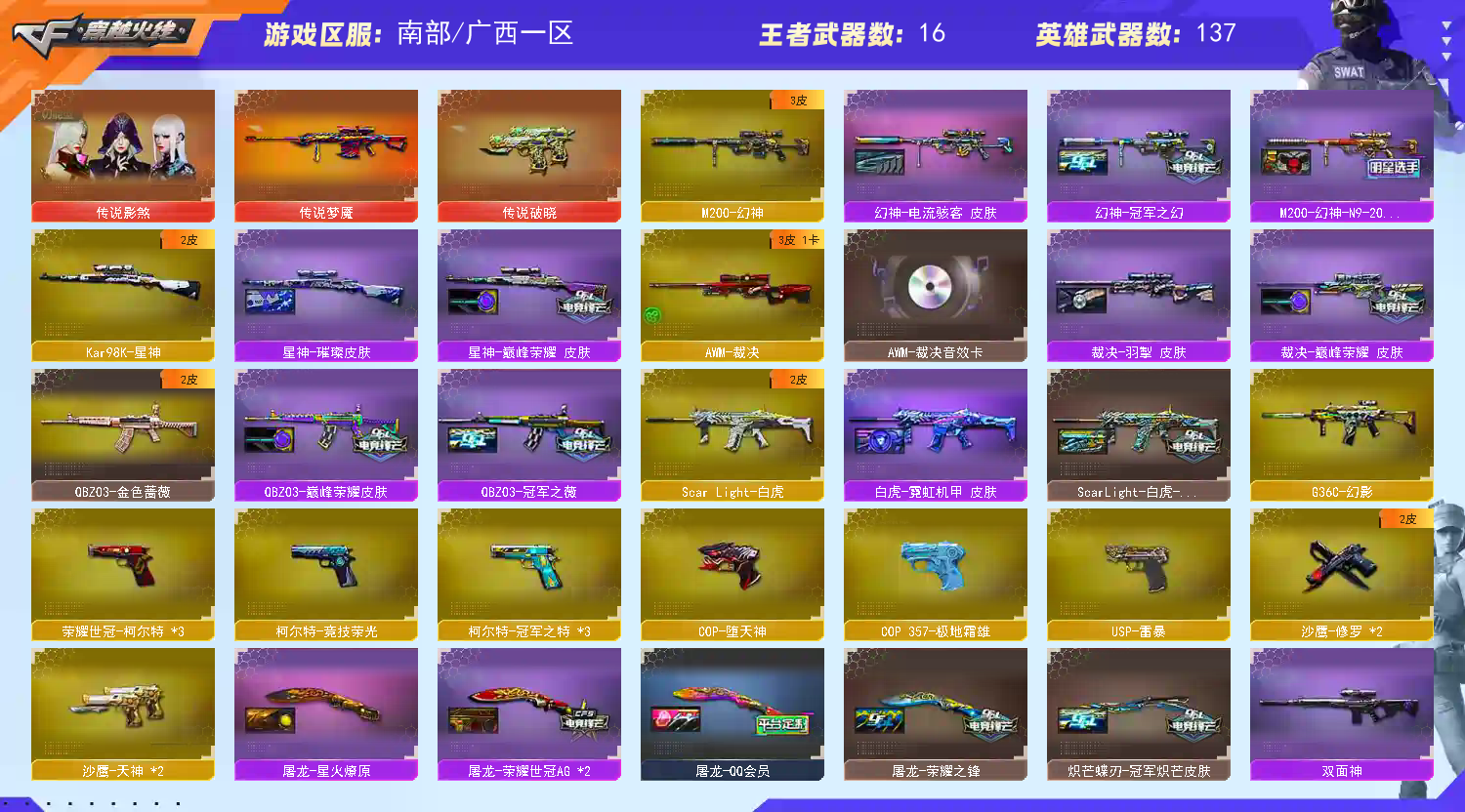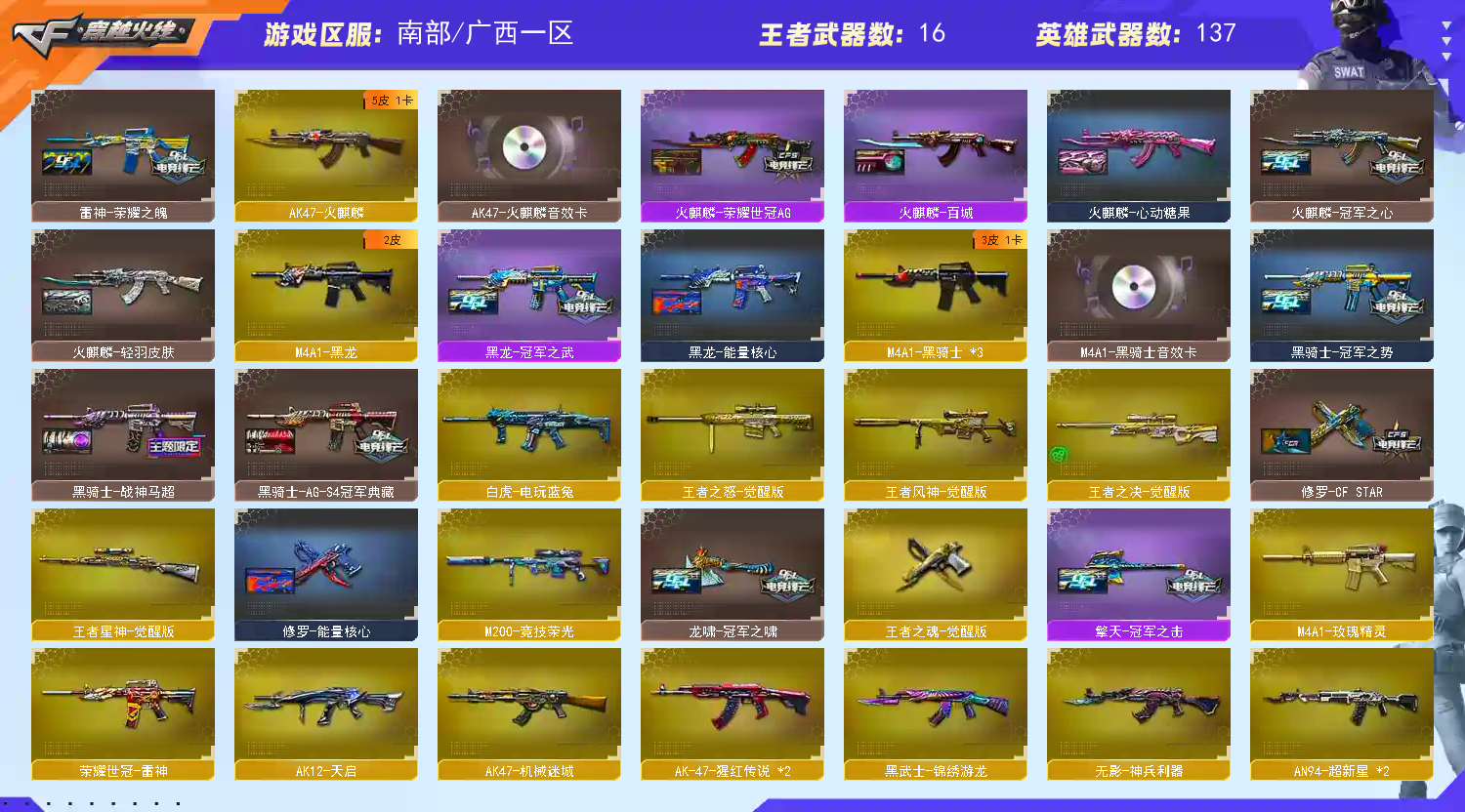 ⭐3冠特4冠刃+白虎+蝴蝶刀+黑骑士雷神幻神火麒麟黑龙qzb均有冠军皮⭐