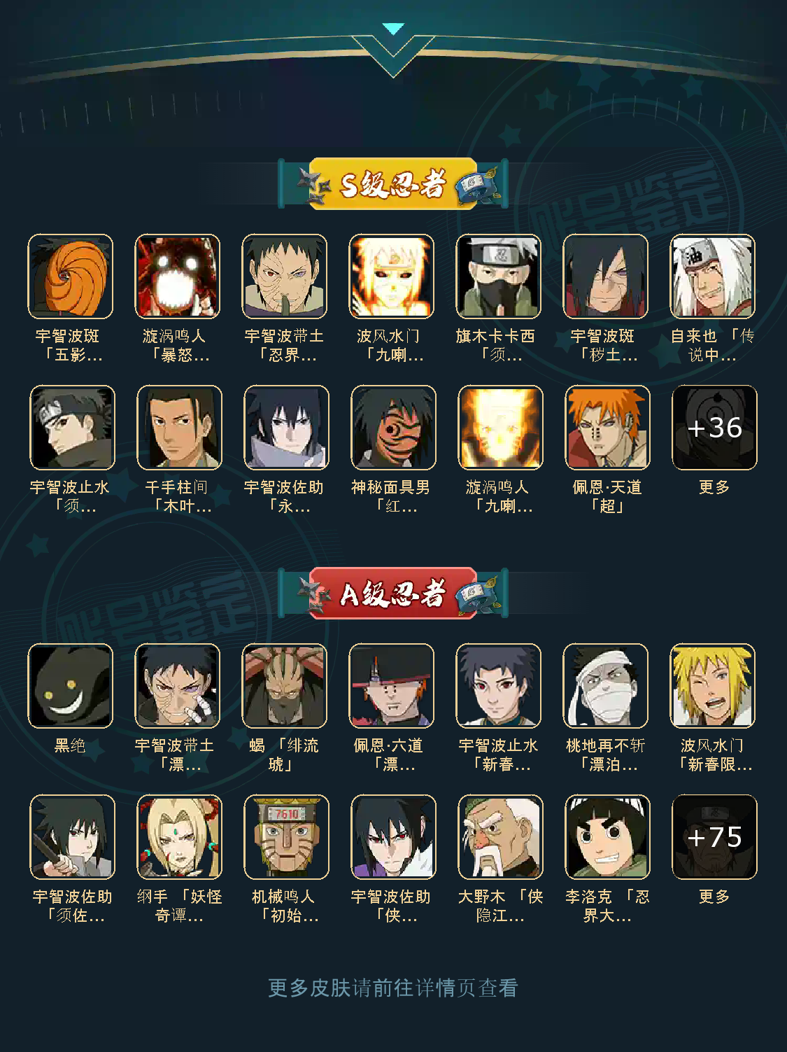 46S 82A 346忍者 宇智波止水「新春限定」/桃地再不斩「漂泊武士」/蝎 「绯流琥」/佩恩·六道 「漂泊浪客」/波风水门「新春限定」/宇智波带土 「漂泊浪客」/神秘面具男 「红夜之刃」/宇智波斑 「秽土转生·解」/自来也 「传说中的三忍」/波风水门「秽土转生」/千手柱间 「木叶创立」/宇智波止水 「须佐能乎」/漩涡鸣人 「九喇嘛连结」/漩涡鸣人 「暴怒·第六尾」/宇智波斑「白面具」/宇智波带土「忍界大战」/宇智波佐助 「永恒万花筒」/佩恩·天道「超」/旗木卡卡西 「须佐能乎」