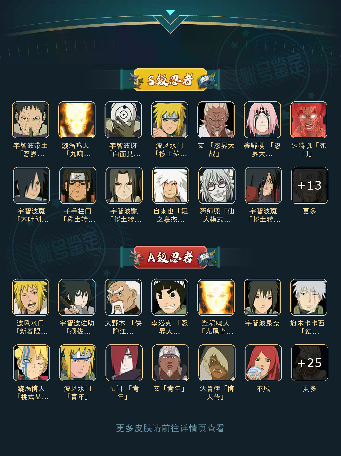战力:1158W+;VIP10级;S忍22个;A忍33个,通灵兽17个,S忍:普通纲手猿飞日斩九喇嘛鸣人仙人自来也豪杰自来也大蛇丸百豪纲手死门凯波风水门秽土水门秽土猿飞秽土扉间千手柱间秽土柱间秽土斑木叶创立斑须佐鼬秽土鼬神秘面具男白面具忍战