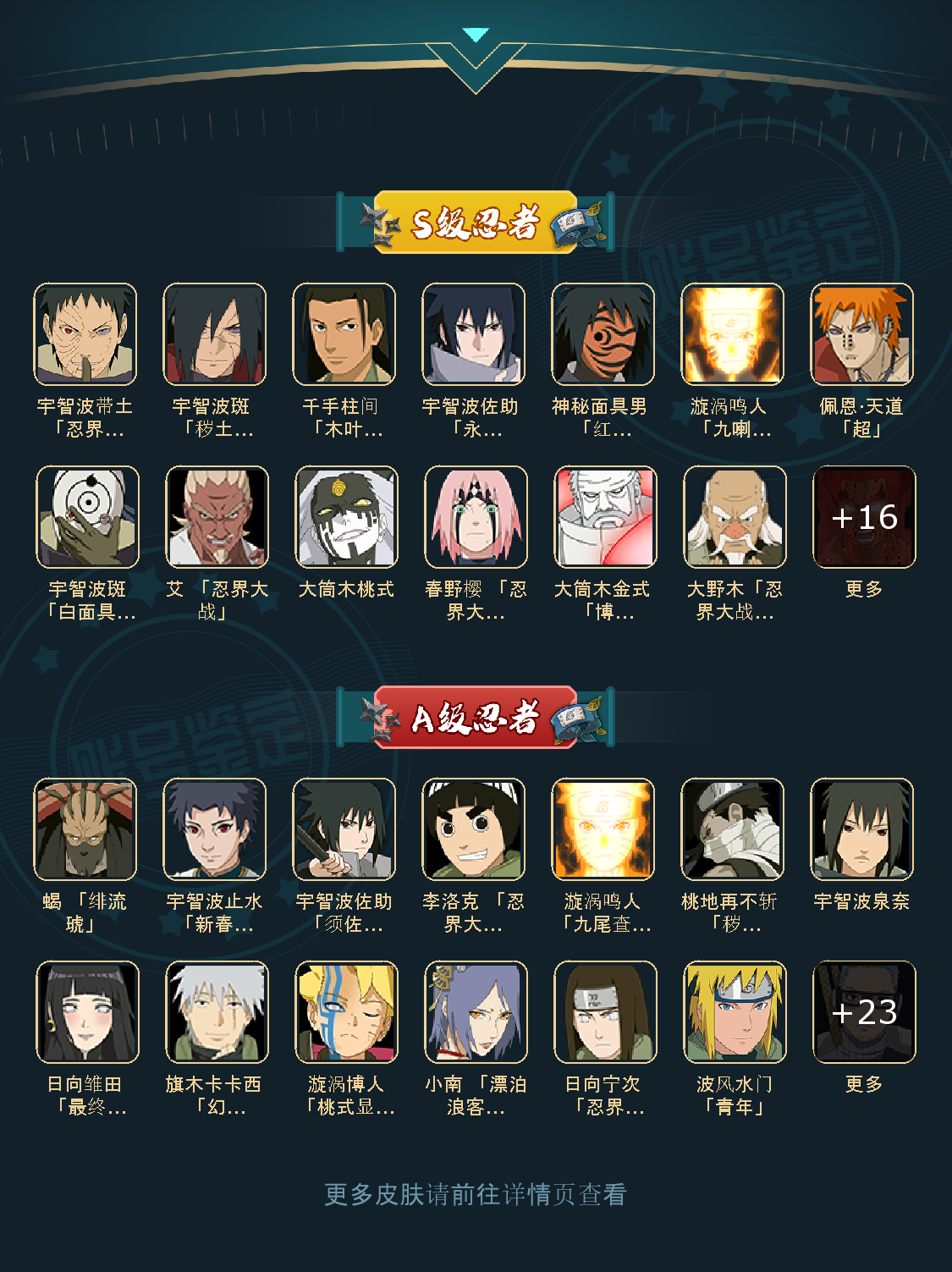 战力:1353W+;VIP11级;S忍28个;A忍30个,通灵兽18个,S忍:普通纲手猿飞日斩九喇嘛鸣人永恒万花筒佐助忍战樱仙人自来也大蛇丸死门凯普通自来也豪杰自来也波风水门秽土猿飞秽土扉间木叶创立柱间秽土柱间木叶创立斑秽土解斑须佐鼬秽土鼬