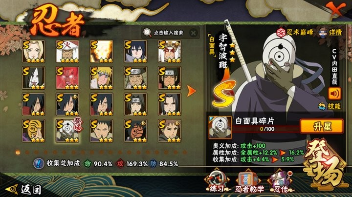 战力:1238W+;VIP11级;S忍24个;A忍33个,通灵兽19个,S忍:普通纲手猿飞日斩九喇嘛鸣人永恒万花筒佐助豪杰自来也大蛇丸死门凯波风水门秽土猿飞秽土柱间秽土斑木叶创立斑秽土解斑须佐鼬秽土鼬神秘面具男白面具忍战带土红夜面具男罗砂三