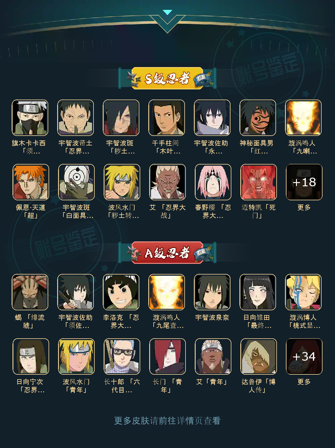 战力:1414W+;VIP10级;S忍28个;A忍39个,通灵兽20个,S忍:普通纲手猿飞日斩九喇嘛鸣人永恒万花筒佐助忍战樱仙人自来也大蛇丸百豪纲手普通自来也豪杰自来也死门凯波风水门秽土水门秽土猿飞秽土扉间秽土柱间木叶创立柱间秽土斑秽土解斑