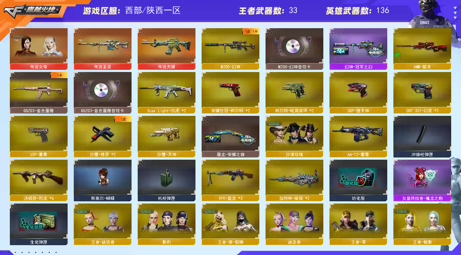 【允许排位】传说女帝🔥幻神音效卡+冠军/白虎/幻灵全套/传说圣灵光耀/雷暴USP/朱雀/沙漠玫瑰+6烈蝴蝶