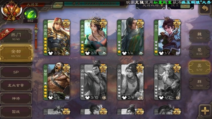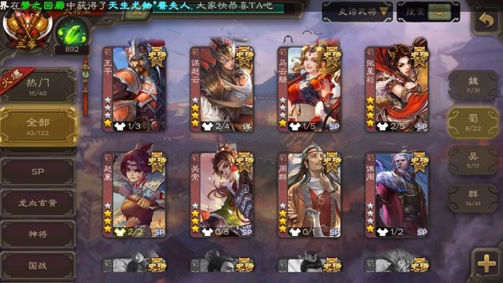 神孙策,神赵云,神太史慈,神吕布 动态刘焉/神孙策/马均/南华老仙/祢衡/留赞/神太史慈/界徐盛/王元姬/神赵云/界钟会/神吕布/界李儒/司马徽/动态许攸/张让/关索/动态星周不疑/界曹真/嵇康/杨修/陈琳/刘烨/王平/谋赵云/马云禄/周群/张星彩/赵襄/谯周/界朱然/界步练师/贺齐/陶谦/审配/王允/沮