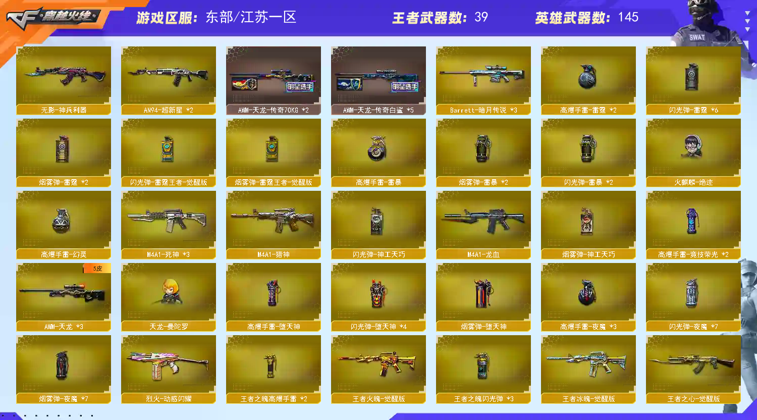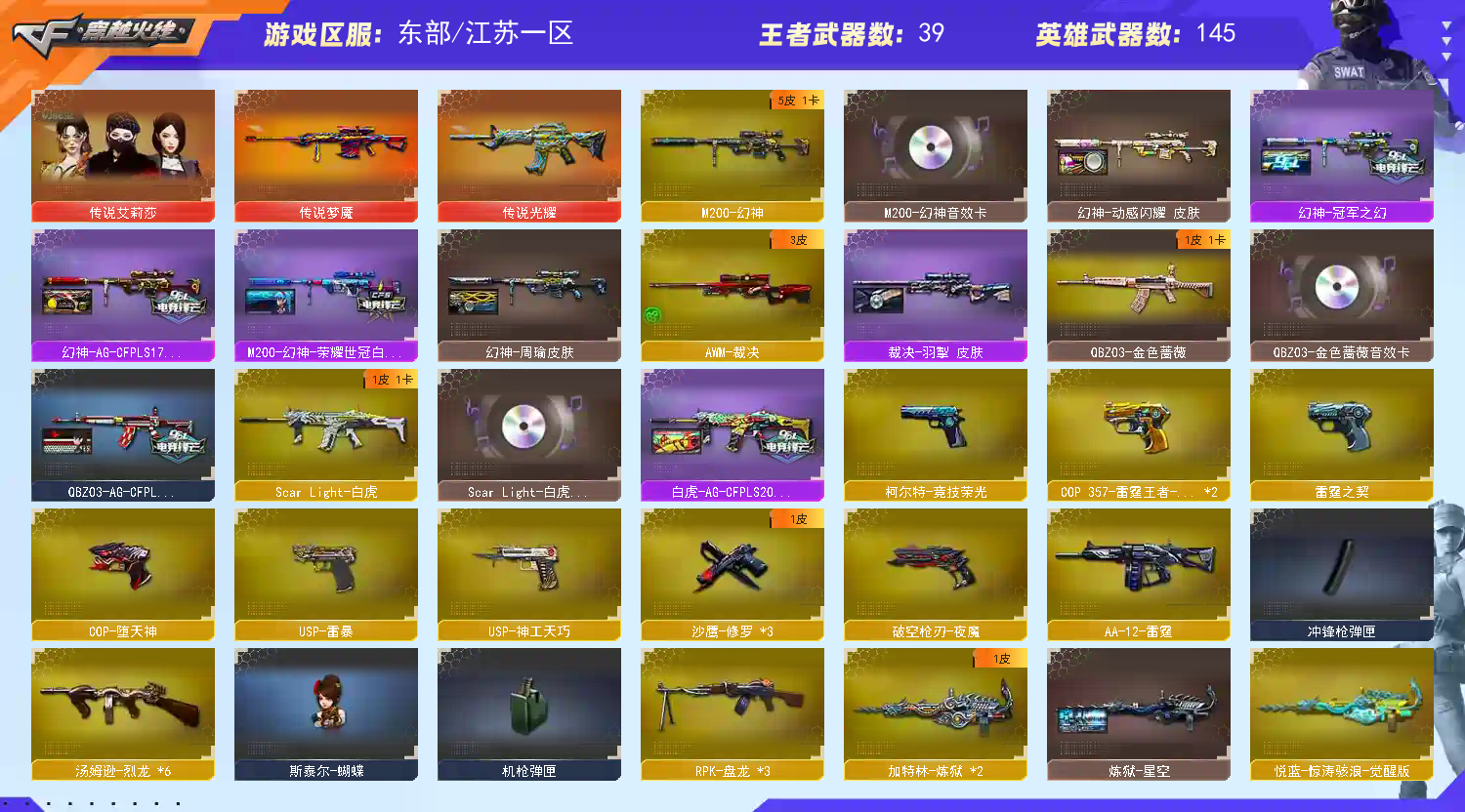 🔥副武器:cop堕天神+cop雷霆+cop雷霆王者x2+usp雷暴+神功天巧+竞技柯尔特+破空枪刃夜魔🔥