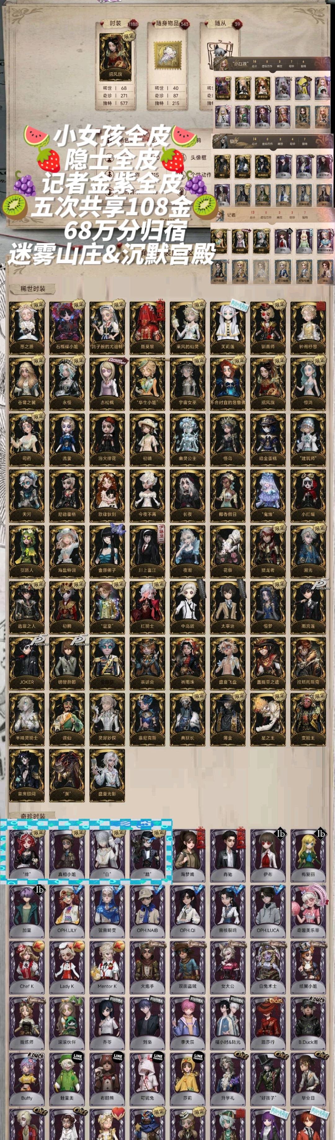 【安卓】 禁赛禁匹配❤️小女孩隐士全皮❤️记者金紫全皮❤️共享108金🌈鸽子驯兽师苍鹭赤松枫永恒/典狱长