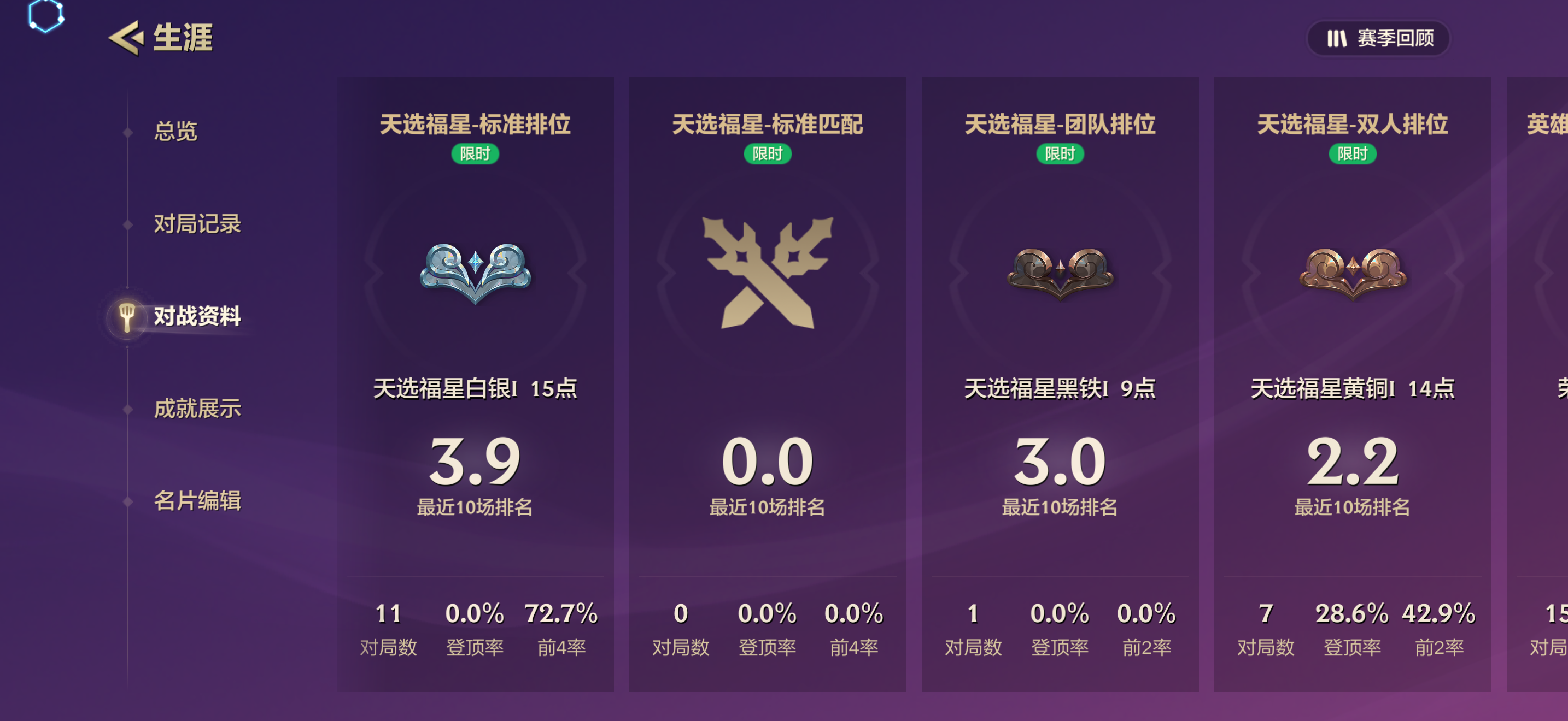 荣耀黄金/单排段位