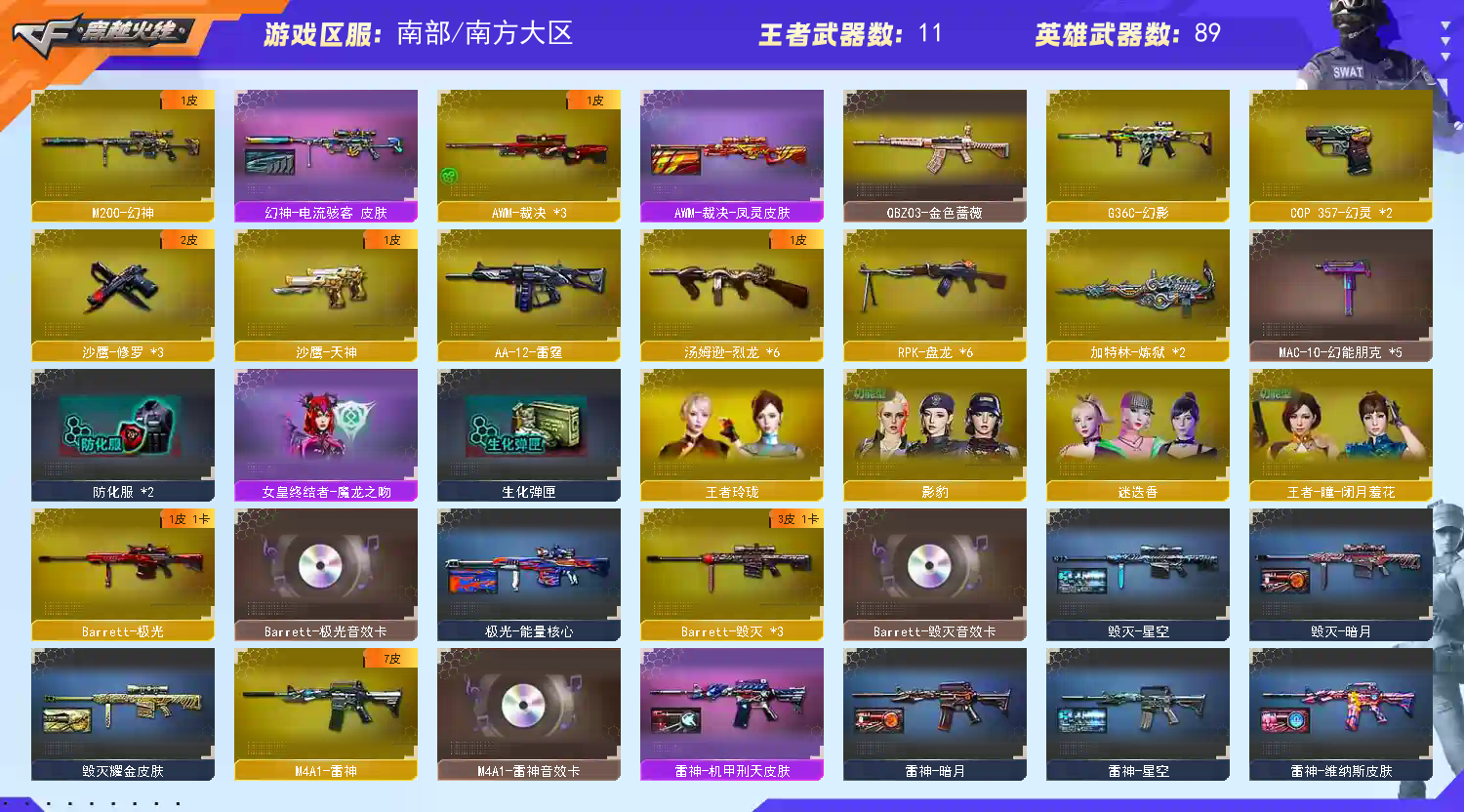 【其他重要武器】激光毁灭者III/机甲撕裂者III/AK47-冰龙粉碎者/冰龙粉碎者-白马银枪(2)/末日审判者III/激光毁灭者III-白马银枪/M4A1-肯德基/M4A1-XS-翔龙(2)/黄金AK-47/XM8-炫彩(2)/海浪AK47-Q浏览器/AK-103-火线13周年/M4A1-樱/AK47-万圣节2021/AK12-幽灵/QBZ03-吕布/M14EBR-CFS 2020/AK47-丹龙/M4A1-秘银赤龙/M4A1-机械魔影/AK47-朋克/AK47-雷蛇/M4A1C-死亡之翼/M4A1枪王排位II/AK47-绚樱(2)/M4A1-PINK/AK47-十年火线/QBZ03-烛龙/AK47-枪娘/AK47-万圣节2018/AK47-娜塔莎/M14EBR-天羽/AK-103-红色悦动/AK-47-二次元/AK47-QT/凤凰之魂/M4A1-青龙./AK47-青龙/AK47-B-十周年/红龙AK47/AK47-十二生肖-蛇/M4A1-S-能量核心/AN94-青花瓷/Scar-Light-赤血龙魂/金色小号/M4A1-圣诞2021/M4A1-紫炎/HK417-赤血龙魂/QBZ03-锋芒破茧(2)/M4CQBR-AP-孔明/火麒麟-小电视特供/AK47-死亡之翼/M4A1-C-海浪/M4A1-XS-耀龙/AK47-SS/M14EBR-炎龙/M4A1-水枪-机甲核心/AK47-大帝林肯/深海AK47-Q管家/G3A3-SS-枪王排位/M4A1-万圣节2020/M4A1-紫狱/AK103-神秘黑洞/M4A1-情人节2019/M4A1-齐天大圣/AK47-肯德基/AK47-轮回/M14EBR-朋克/M4A1-S-火种/百城M4A1/AWM-万圣节刀锋(2)/M200-大黄蜂/AWM-A-圣诞2021/黄金AWM/AWM-CFS 2020/M82A1-封神/M200-WeGame/M200-青帝/M200 CheyTac-大圣/AWM-摸金校尉/AWM-S/AWM-A枪王排位II(2)/AWM-红色悦动/AWM-枪娘/M200-情人节2019/AWM-T/巴雷特-情人节2020/M82A1-青龙/AWM-蓝水晶/AWM-涂鸦/M200-涂鸦/Barrett-炎龙/雷蛇AWM/Barrett-翔龙/M200-万圣节/AWM-卡通/AWM-A/AWM-恶棍-枪王排位/AWM-7周年/AWM-2018圣诞/98K-炫彩/AWM-恶棍/Barrett-苍龙/AWM-十周年/AWM-盛典-CFS 2022(2)/蓝色魅影/M200-赤血龙魂/M200-朋克/AWM-小故障/巴雷特-绚樱/Barrett-麟龙/AWM-银月/破天狂龙/Barrett-捣乱兔兔/M200-落樱/M200-庆典-CFS 2021/M200-青花瓷/M200-牡丹/凤凰之力/M200-神秘黑洞/Barrett-耀龙/Barrett-孔明/AWM-Pink(2)/暗金AWM/M200-萌杀/M82A1-飞龙在天/百城AWM/巨龙咆哮Ⅲ/末日裁决者/KAC-赤烛/MG3-翔龙/M240B-卡通/阿梅利轻机枪-暗夜风暴/KAC-耀龙/KAC-小动物/EVO III-赤血龙魂(2)/P90-炫彩/EVOIII-萌杀/雷蛇冲锋枪/Steyr TMP-CFS2020纪念版/斯太尔-能量核心/CPW-动力-潘多拉/斯泰尔-巧克力/EVO3A1-火线13周年/神圣爆裂者/神圣爆裂者-末日/SPAS-12-雷电核心/Spas-12-黑金/AA-12-圣龙(2)/Spas-12-幻能朋克/修罗-年鹏/幻影沙鹰-枪王排位/毛瑟-庆典-CFS 2021(2)/Mauser M1896-CFS 2020/迷彩沙鹰-70KG/沙鹰-青龙/沙鹰-雷蛇(2)/沙鹰-枪王排位(2)/沙鹰-万圣节2018(2)/COP 357-青龙/USP-黑大圣(3)/COP357-绚樱-圣诞/沙漠之鹰-盛典-CFS 2022/MAC-10-幻能朋克(5)/COLT 1911-雷唤苍龙/蟒蛇-炫彩(2)/COP357-朋克/愤怒公牛左轮-枪王排位/柯尔特-百城(2)/COP357-神秘黑洞/COP 357--绚樱/Cop357-萌杀(2)/COP-金蝉子-枪王排位/尼泊尔-庆典-CFS 2021(2)/魔能镰刀(3)/尼泊尔-CFS 2020/军用铁锹-赤龙(2)/军用铁锹-飞龙在天/尼泊尔-炎龙/丛林匕首-卧龙(3)/猫猫手套/尼泊尔军刀-战龙(2)/虹光丛林匕首-枪王排位(2)/Laser Sword-夏日/虹光鹰爪-枪王排位/军用手斧-能量核心/蝴蝶刀-枪王排位/虹光女皇利刃-枪王排位/匕首-幻能朋克/闪光弹-枪王排位(6)/胜利奖杯烟雾弹-枪王排位(4)/手雷-能量核心(3)/胜利奖杯闪光弹-枪王排位(3)/胜利奖杯手雷-枪王排位