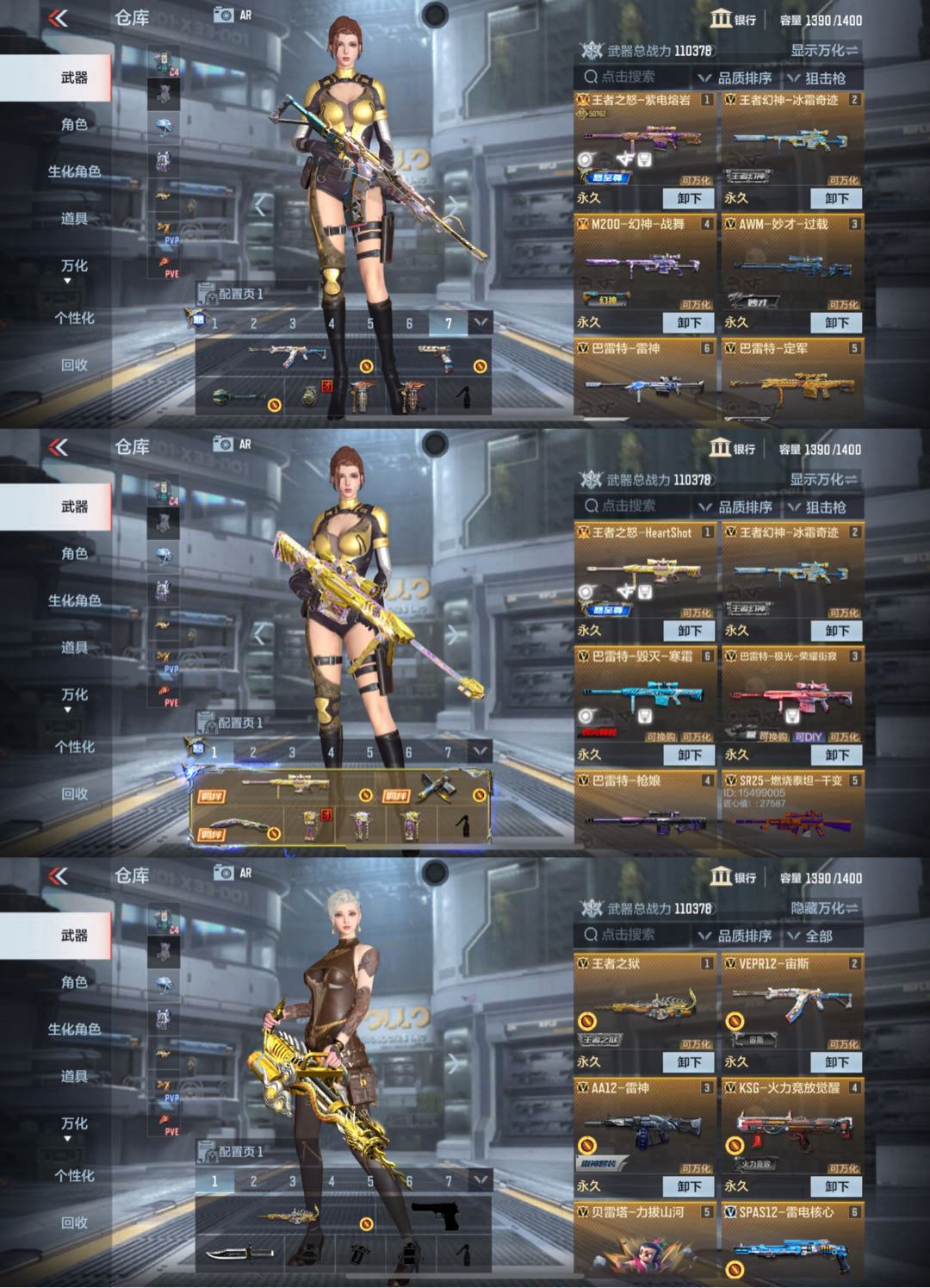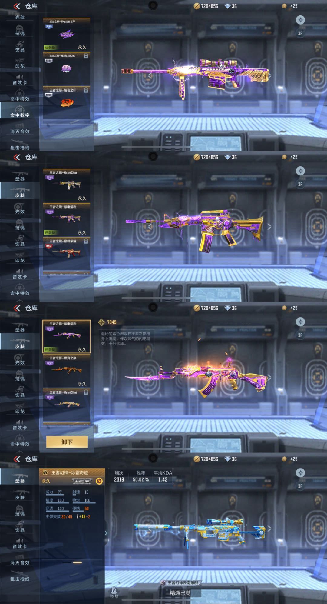 ❤️🔥狙击枪:紫电女团王怒至尊✨冰霜王幻✨幻神战舞✨秒才过载✨定军✨毁灭✨激光