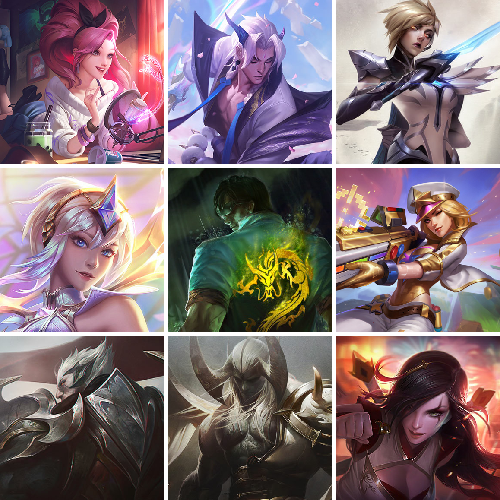 【重要头像】爱情鸽 萨勒芬妮超级巨星 萨勒芬妮独立音乐人 勇者阿狸 我麦是开的么 泳池派对凯特琳 泳池派对佐伊 救生圈 KDA萨勒芬妮 星守金克丝炫彩 可爱悠米 可爱安妮 披萨鸡 战斗学院伊泽瑞尔神话炫彩 此志无双羽饰骑士 不错哦 至臻海珀利安小队迦娜 至臻星之守护者辛德拉 至臻海之歌萨勒芬妮 至臻青花瓷拉克丝 至臻神凰行者霞 至臻魅惑女巫莫甘娜 至臻战斗学院蕾欧娜 至臻星之守护者索拉卡 至臻魔女婕拉