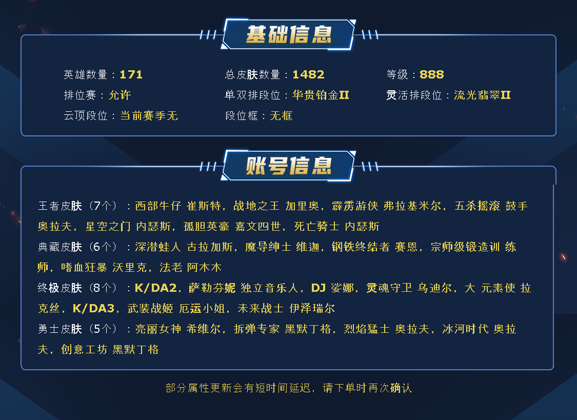 果壳丨可排位丨艾欧尼亚丨1420皮丨海魔至尊丨殿堂传奇阿狸丨商城清空丨玉剑男女刀丨抵抗军丨心之钢