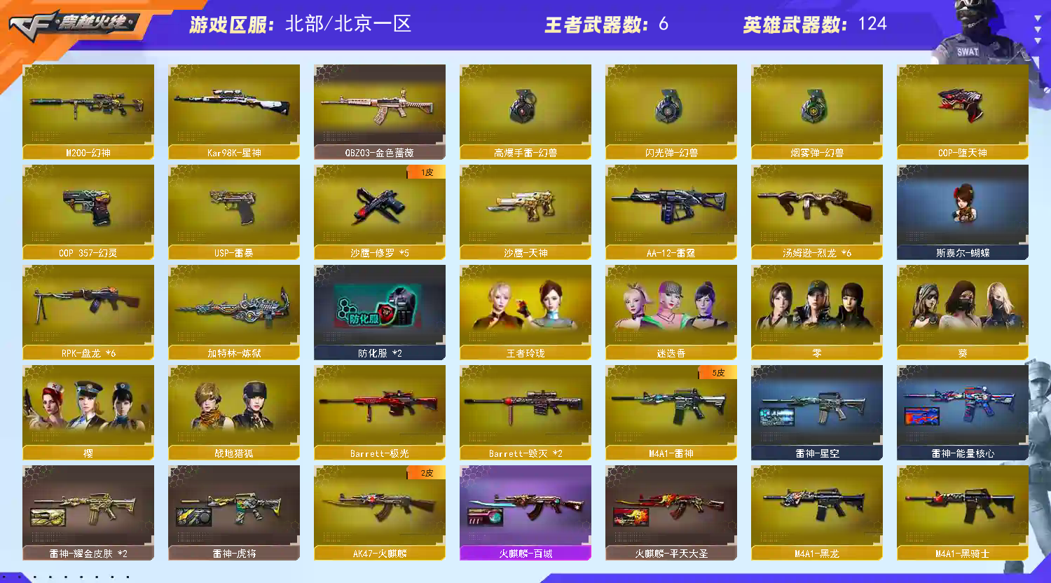 【允许排位】北部M-200幻神98K星神王者白虎王者幻神USP雷暴虎将雷神白鲨生化6烈龙6盘龙斯泰尔蝴蝶