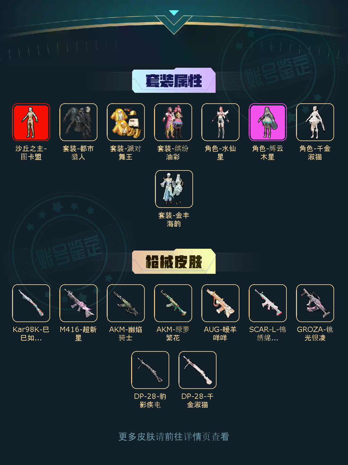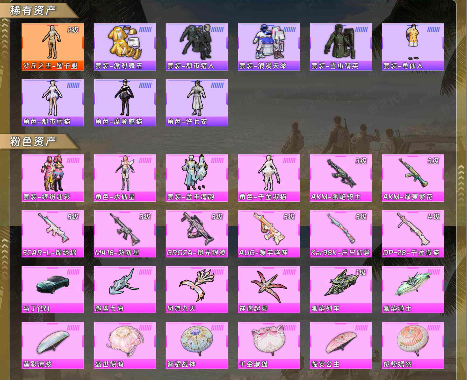 【稀有资产】沙丘之主-图卡盟[2级]/套装-派对舞王/套装-都市猎人/套装-浪漫天命/套装-雪山精英/套装-龟仙人/角色-都市丽猫/角色-摩登魅猫/角色-许七安