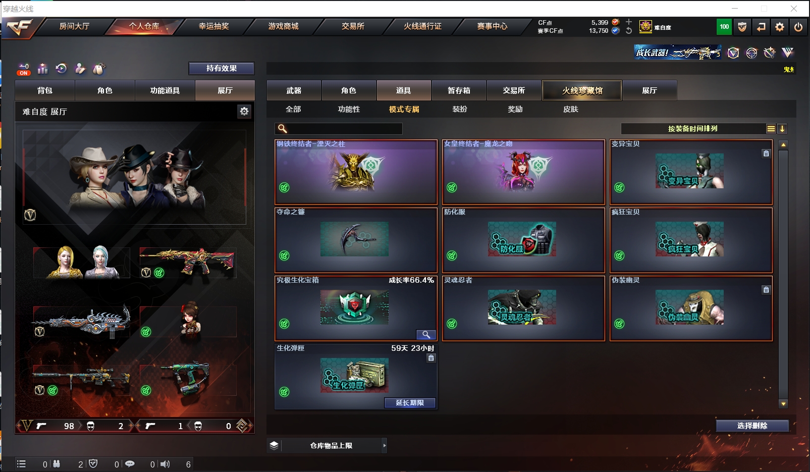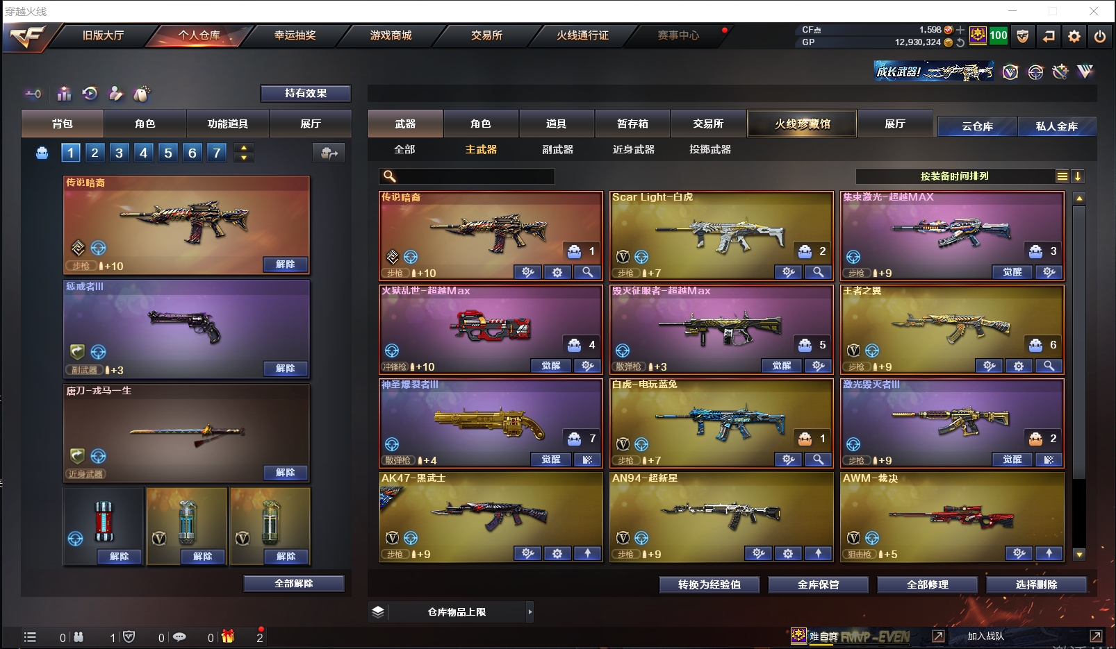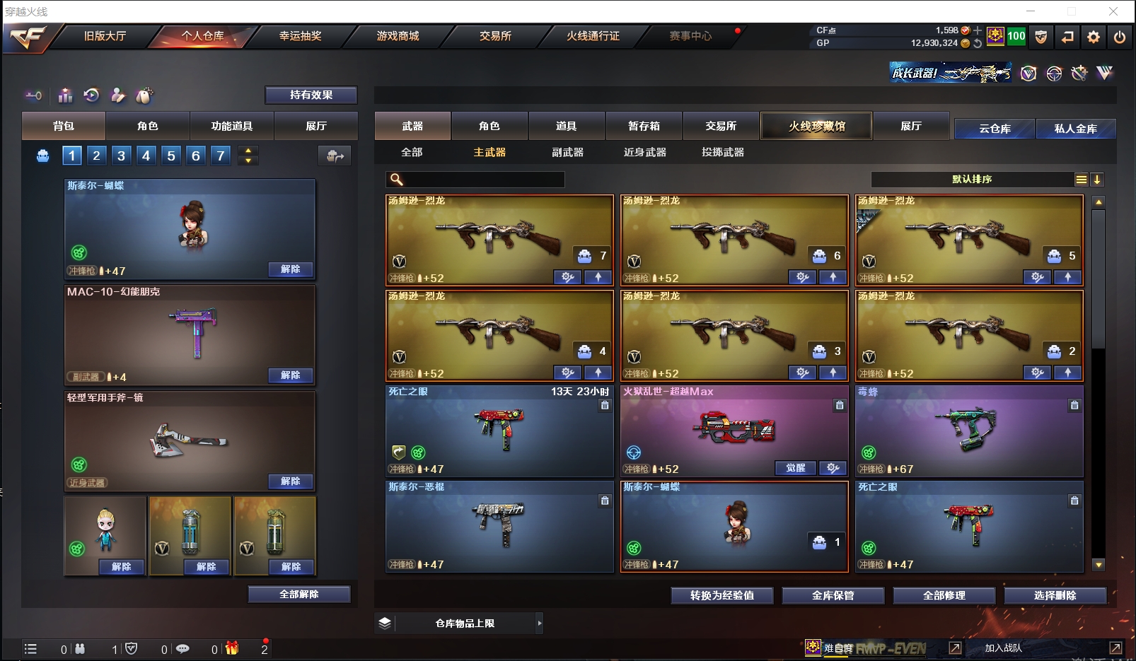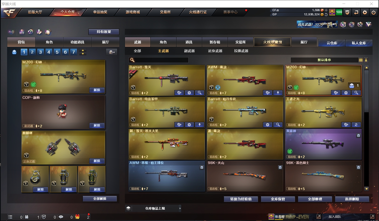 武器:6盘龙6烈龙 毒峰,加特林-炼狱,斯泰尔-蝴蝶,HK417-朱雀,传说暗裔,, 双面神,MAC-10-幻能朋克 COP-旗袍,COP-堕天神,幻神