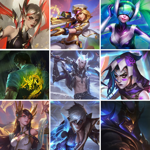 900皮,44神话,圣堂金克丝 ,龙瞎,至臻男刀,至臻鱼人,至臻卡莎,西部天使寒冰塞纳,源计划铁男