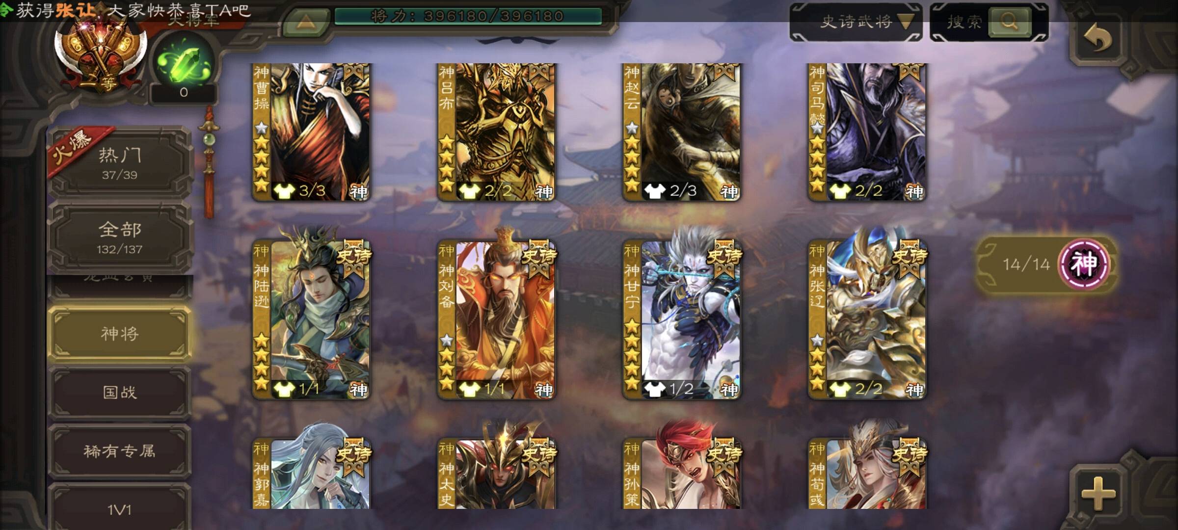 神——神吕布,神赵云,神司马懿,神陆逊,神刘备,神甘宁,神张辽,神太史慈,神荀彧,神曹操,神郭嘉,神孙策,神华佗