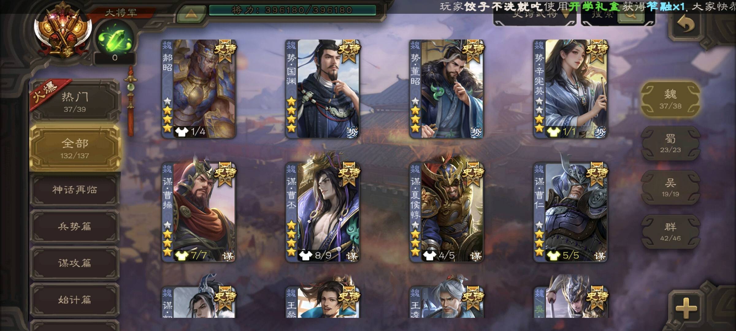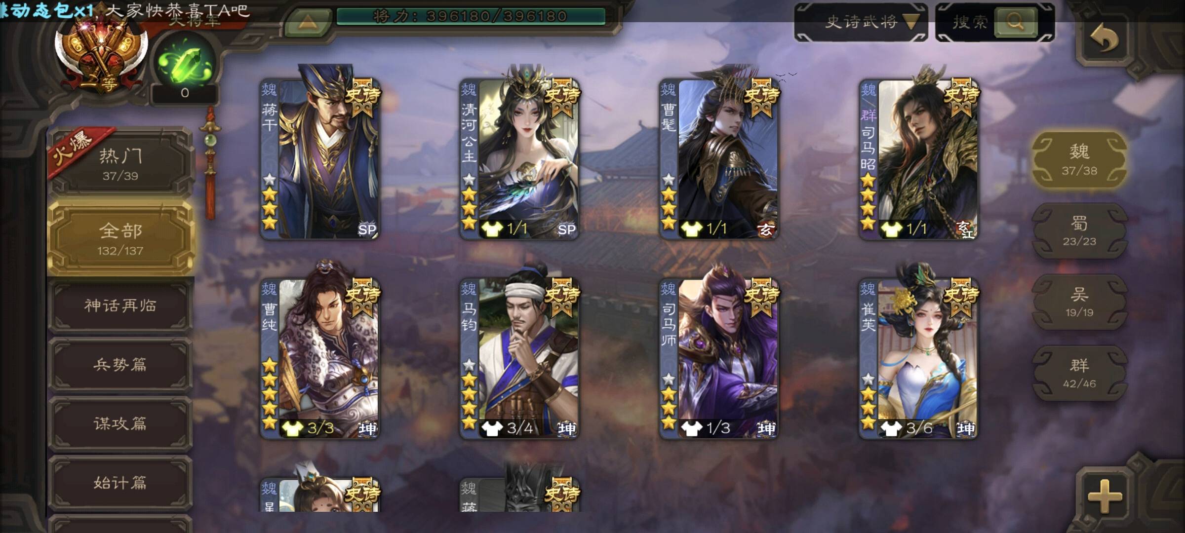【全平台】 崔芙回廊曹髦【木木到时不下】132史诗🔥缺几个无用史诗回廊郭女王势国渊势魏延势太史慈友诸葛亮