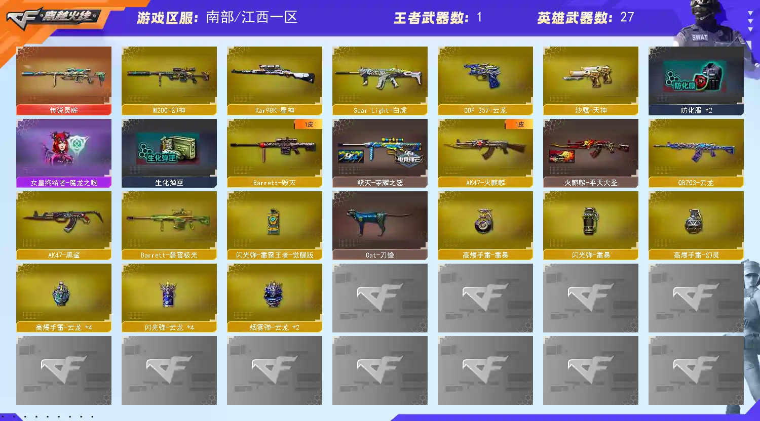 【不允许排位】南部❤️爆破全装❤️传说灵眸❤️98k星神❤️qbz沄龙+cop沄龙❤️荣耀之怒❤️白虎❤️沄龙扇