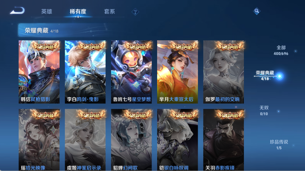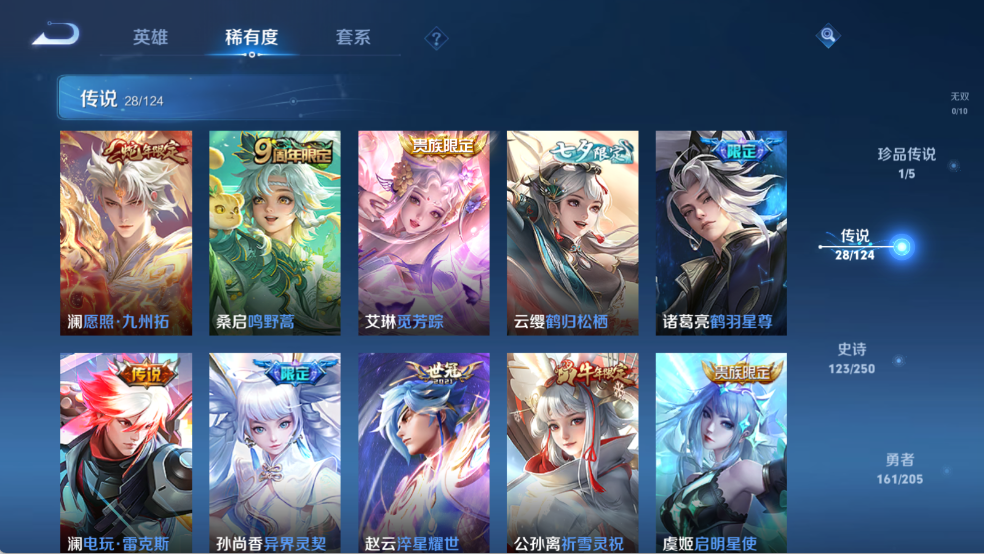 星空梦想,鸣剑·曳影,弑枪猎影,天魔缭乱,白虎志,默契交锋(花木兰),零号·赤焰,梅西,至尊宝,神威,愿照·九州拓,匿光追影者,器灵·落星盏,鹤羽星尊,异界灵契,神树通天,鹤归松栖(云缨),傲雪梅枪