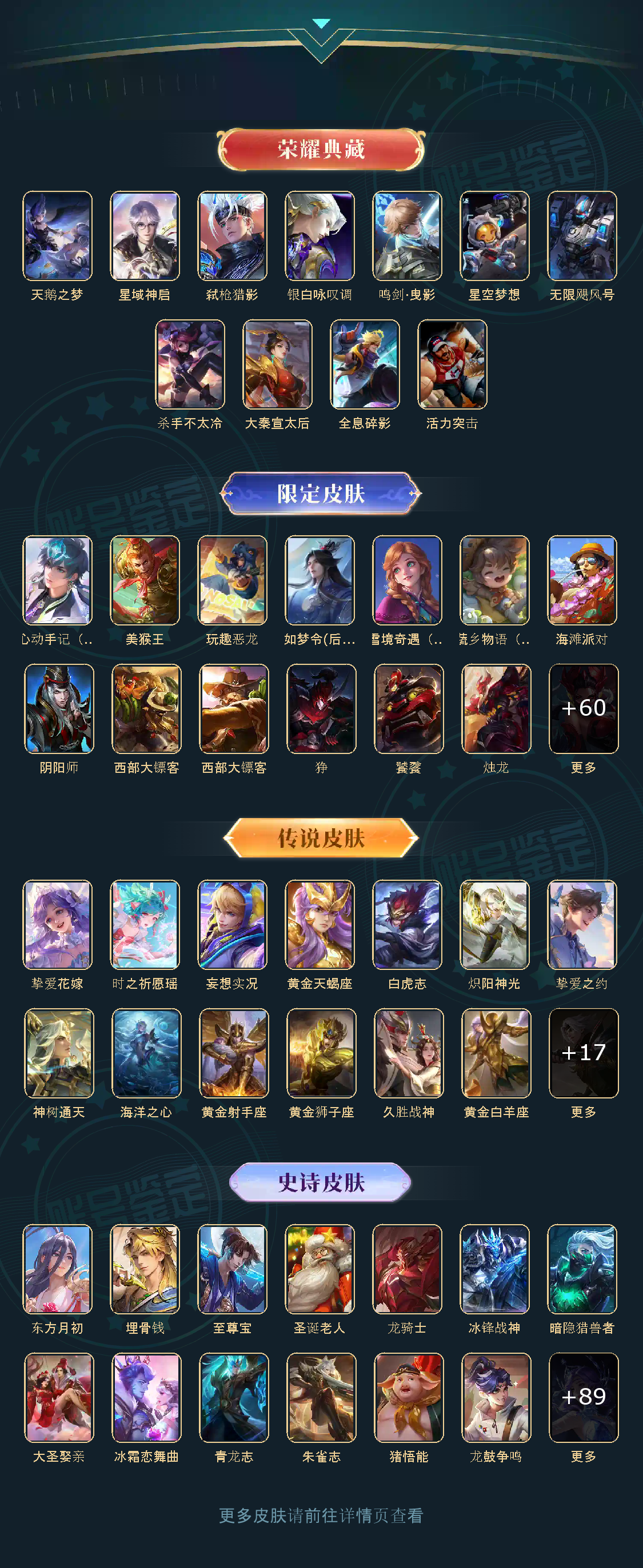 贵族等级V9,英雄数量123,典藏皮肤数10,皮肤数量380,