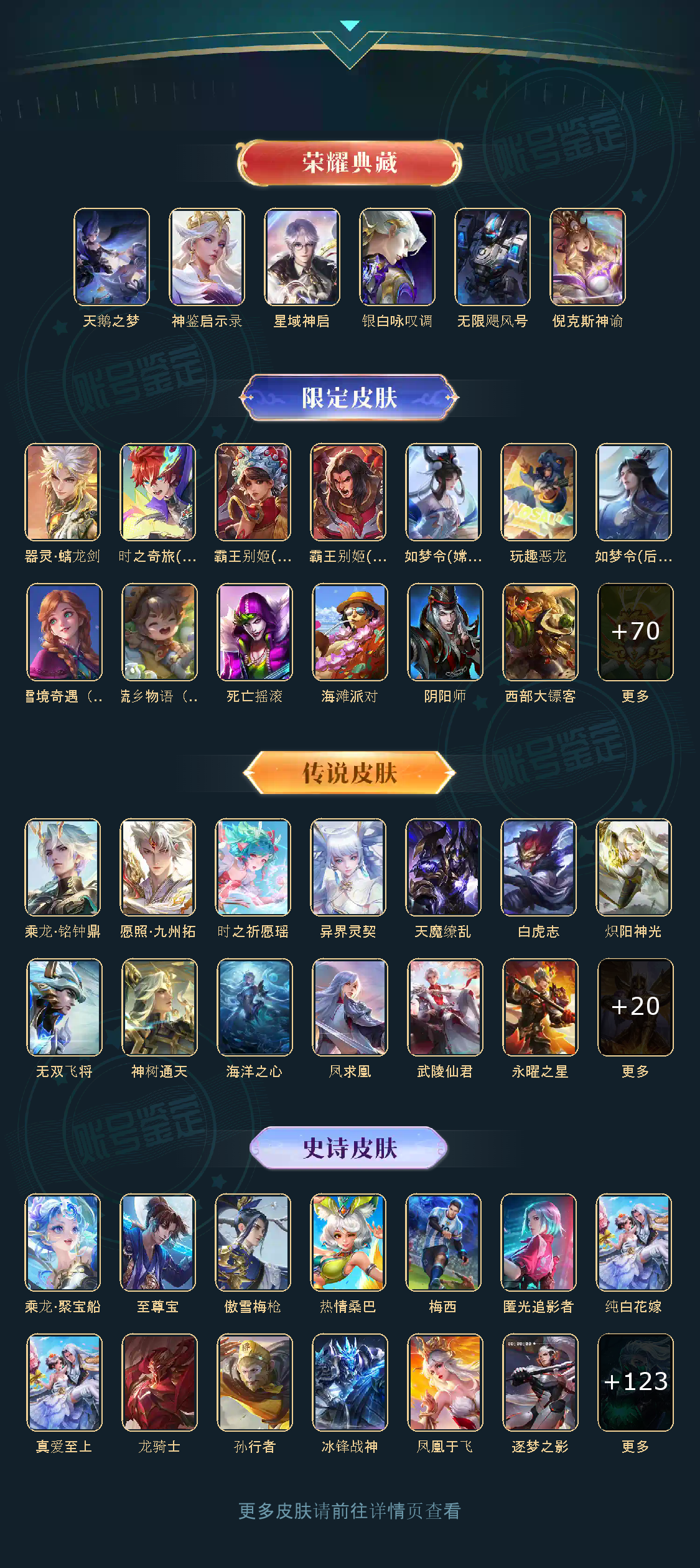 贵族等级V10,英雄数量124,典藏皮肤数5,皮肤数量429,