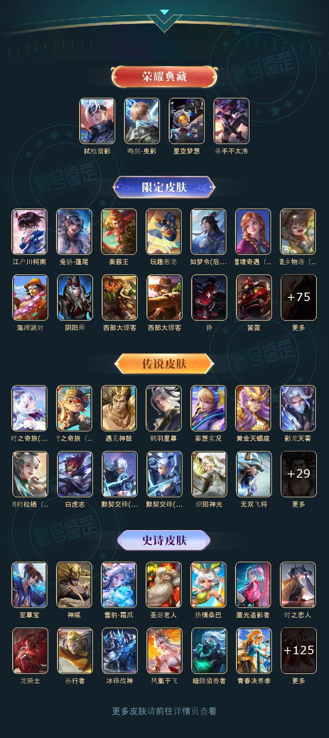 贵族等级V10,英雄数量125,典藏皮肤数4,皮肤数量456,