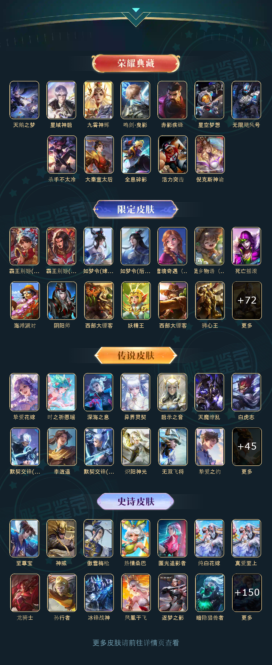 贵族等级V10,英雄数量125,典藏皮肤数11,皮肤数量502,天鹅之梦/星空梦想/无限飓风号/全息碎影/活力突击/倪克斯神谕/鸣剑·曳影/星域神启