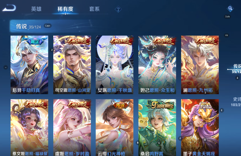 贵族等级V10,英雄数量125,典藏皮肤数5,皮肤数量382,天鹅之梦/杀手不太冷/无限飓风号/倪克斯神谕/鸣剑·曳影