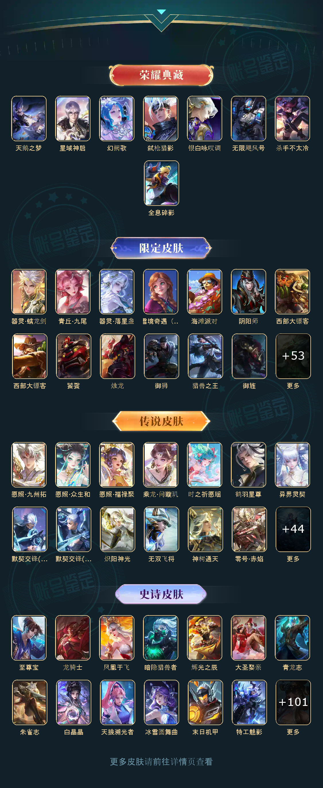 贵族等级V10,英雄数量125,典藏皮肤数7,皮肤数量382,