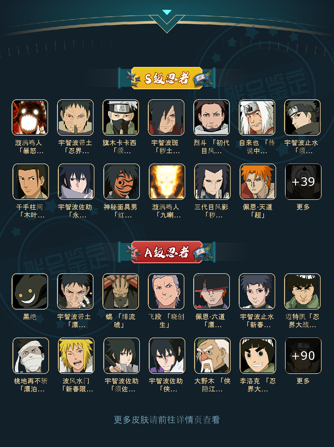 52S 103A 409忍者 宇智波带土「暴怒」/干柿鬼鲛「鲛肌融合」/宇智波佐助「疾风传咒印」/迈特凯「忍界大战」/宇智波带土「忍界大战」/宇智波斑「木叶创立」/佩恩·天道「超」
