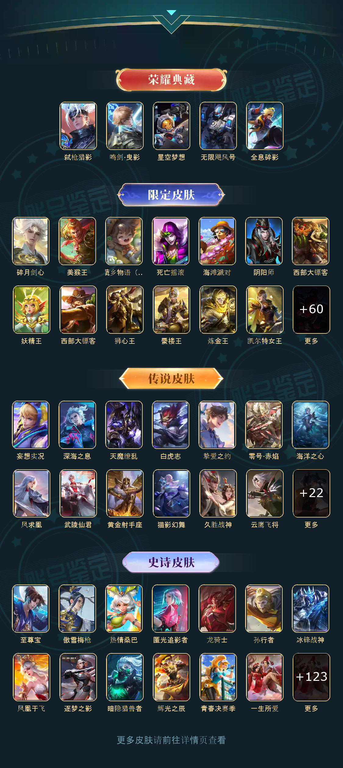贵族等级V10,英雄数量125,典藏皮肤数5,皮肤数量414,