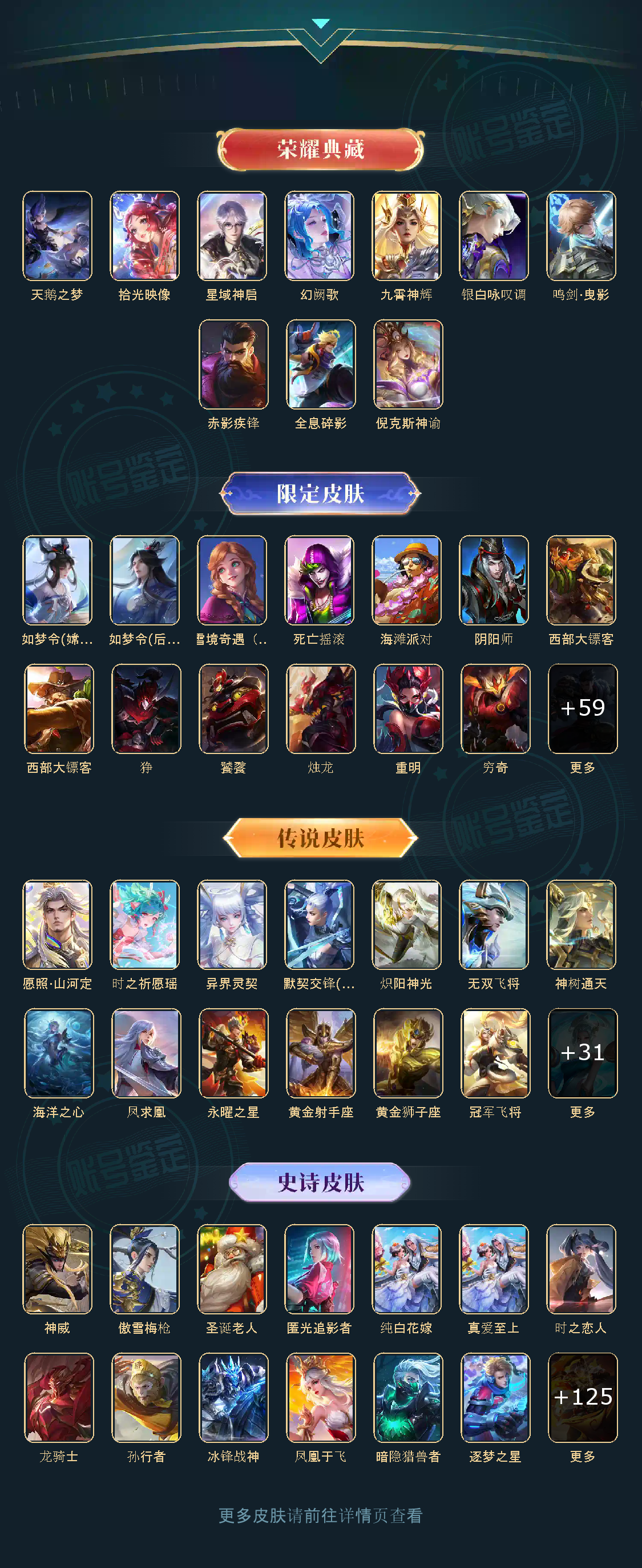 贵族等级V10,英雄数量125,典藏皮肤数10,皮肤数量429,天鹅之梦/全息碎影/倪克斯神谕/鸣剑·曳影/星域神启