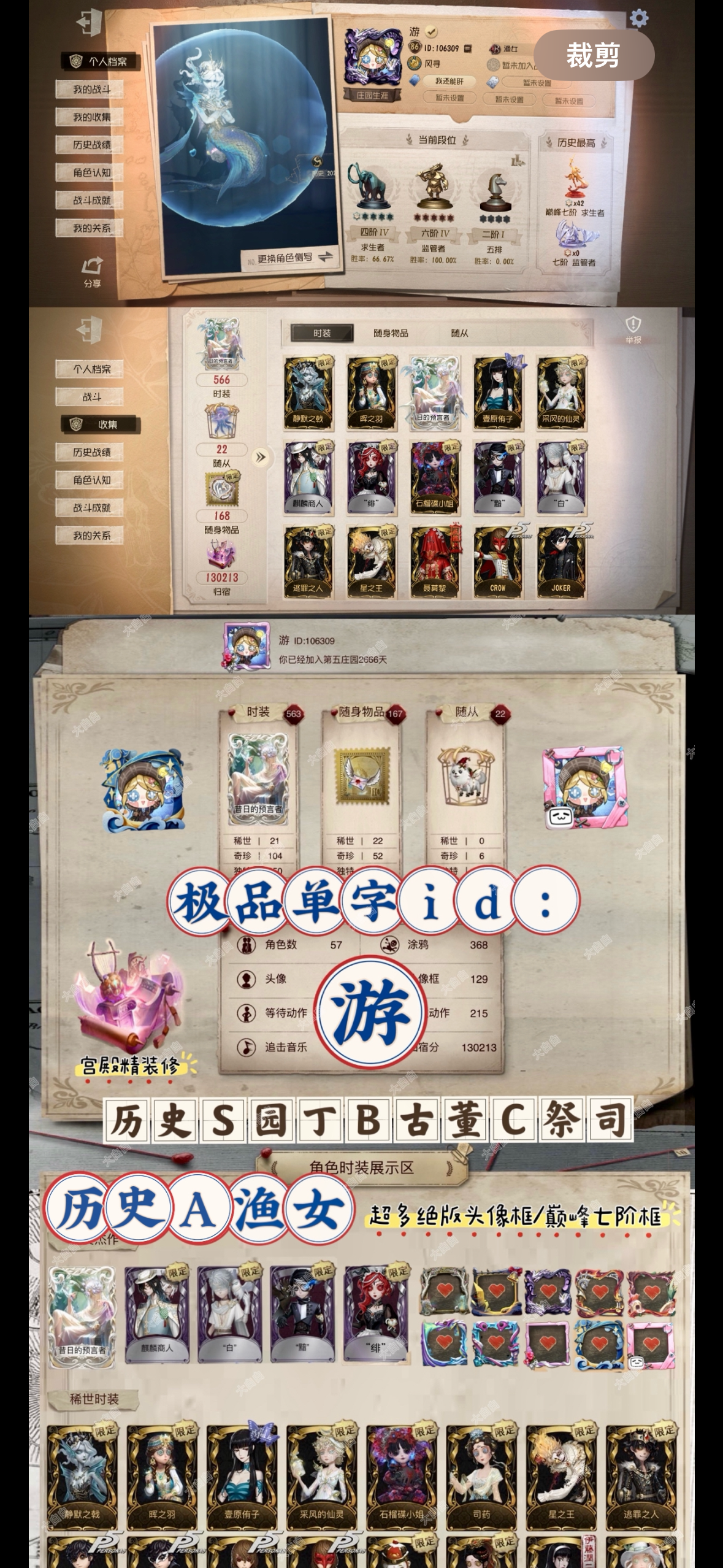 极品单字🆔“游”🌟虚妄先知白黯麒麟商人✨历史S牌园丁B古董C祭司✨园丁推理头✨宫殿精装