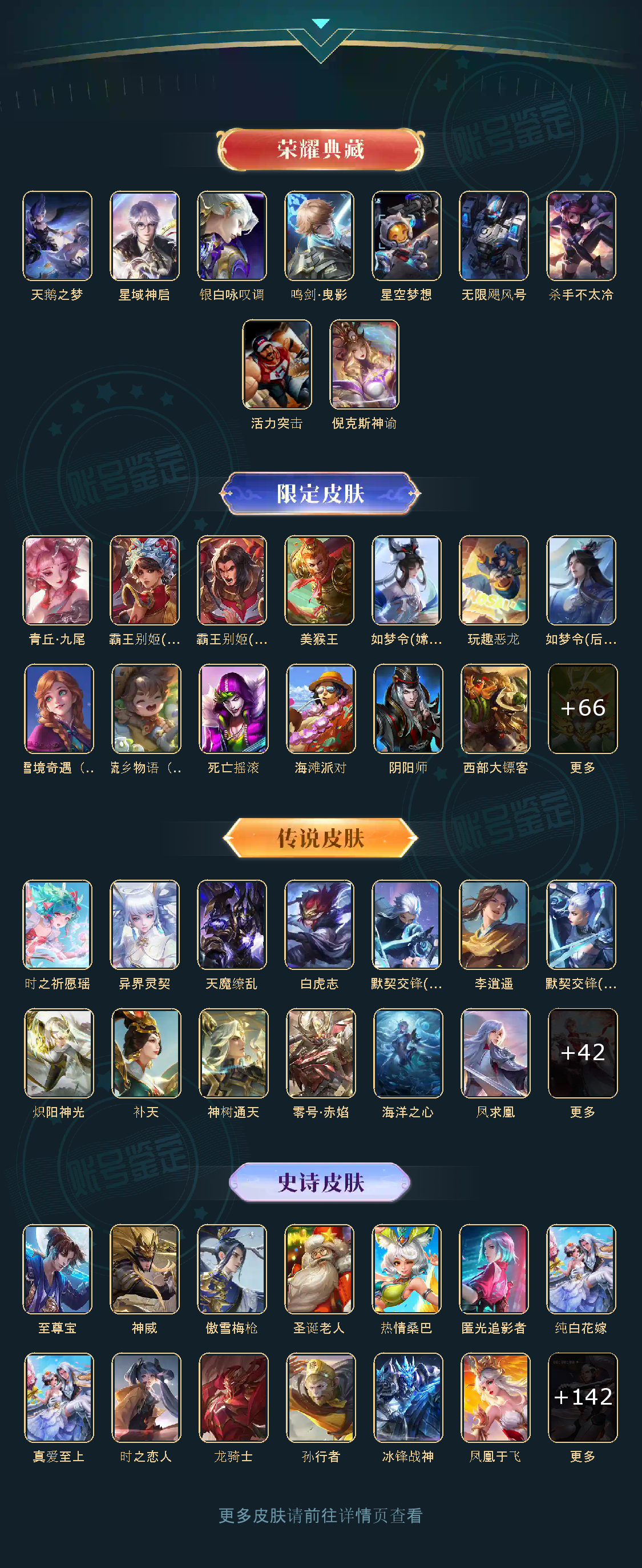 贵族等级V10,英雄数量123,典藏皮肤数8,皮肤数量466,