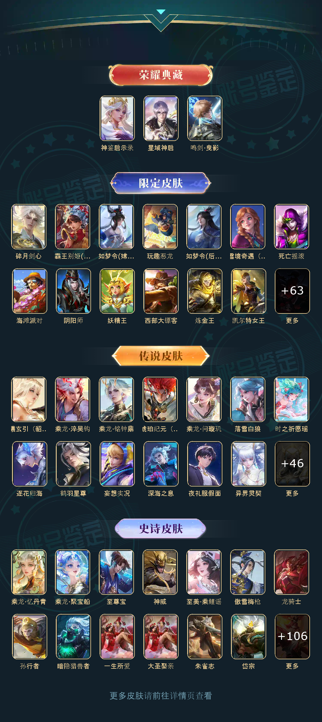 贵族等级V10,英雄数量123,典藏皮肤数3,皮肤数量400,
