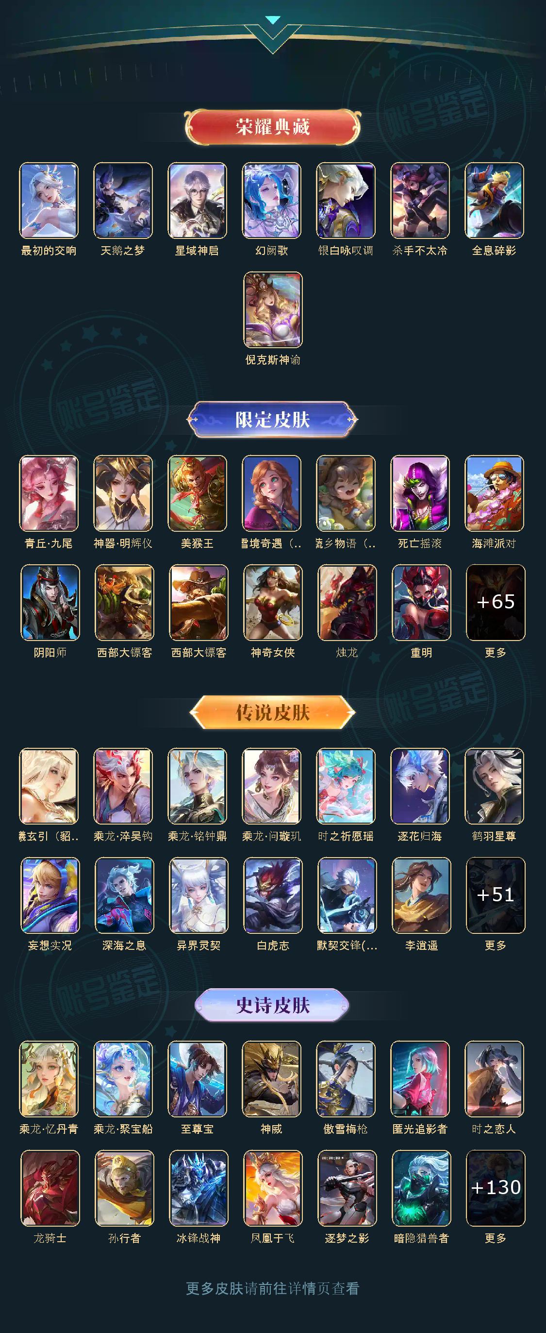 贵族等级V10,英雄数量124,典藏皮肤数8,皮肤数量448,天鹅之梦/全息碎影/倪克斯神谕/星域神启