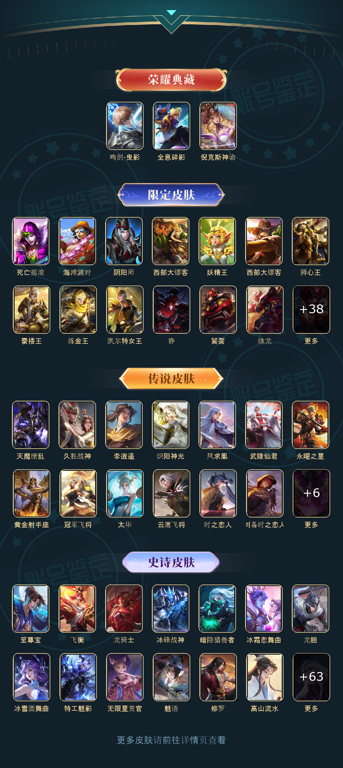 冰锋战神/街头霸王/天魔缭乱/至尊宝/王者之锤/凤求凰/武陵仙君/全息碎影/冰霜恋舞曲/太华/久胜战神/飞衡/梁祝/倪克斯神谕/鸣剑·曳影/龙胆/李逍遥